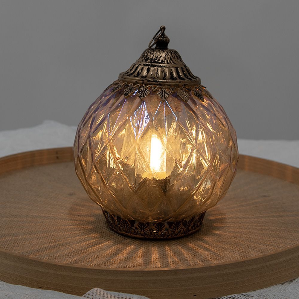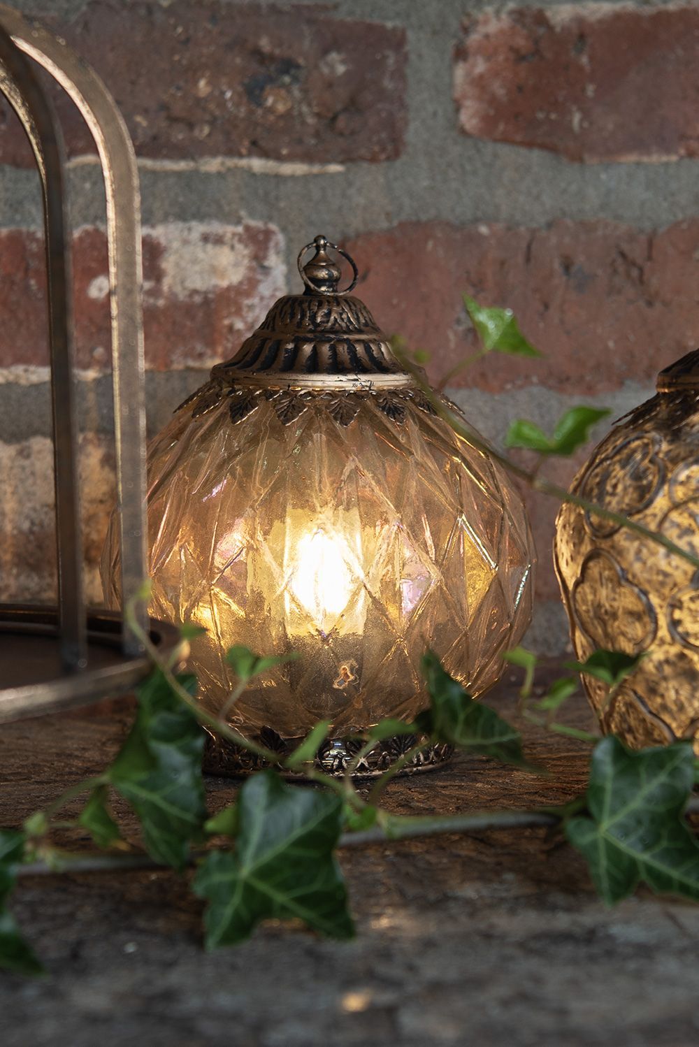 Clayre & Eef Clayre & Eef LED Laterne Ø 15x19 cm Kupferfarbig Glas (Gr. Ø 15x19 cm)