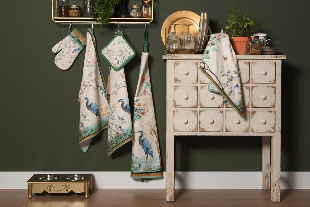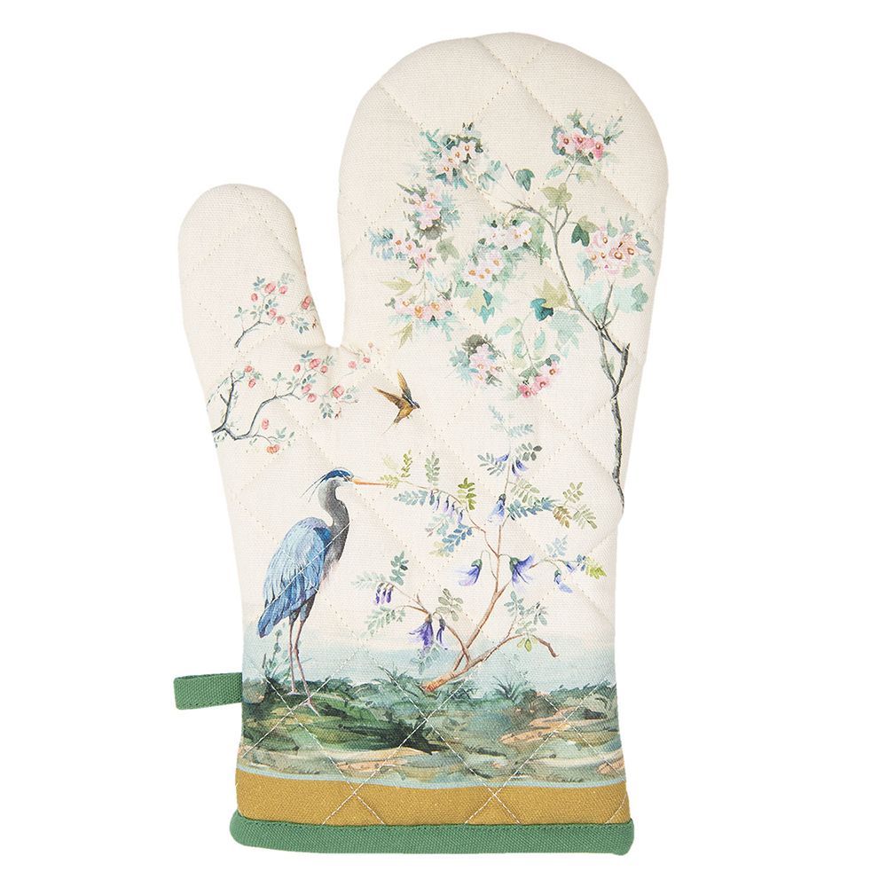 Clayre & Eef Clayre & Eef Ofenhandschuh 18x30 cm Beige Baumwolle Tropisches Motiv