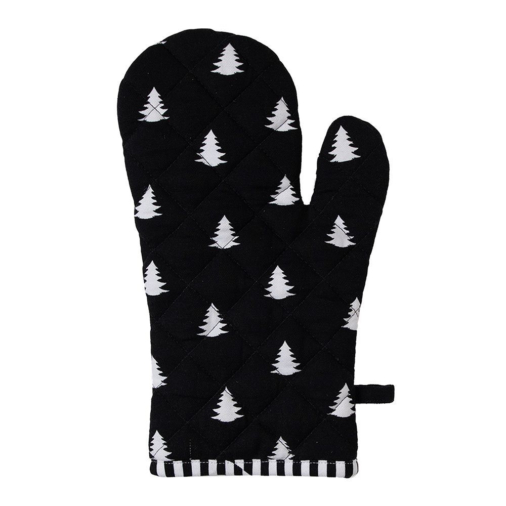 Clayre & Eef Clayre & Eef Ofenhandschuh 18x30 cm Schwarz Weiß Baumwolle Weihnachtsbaum