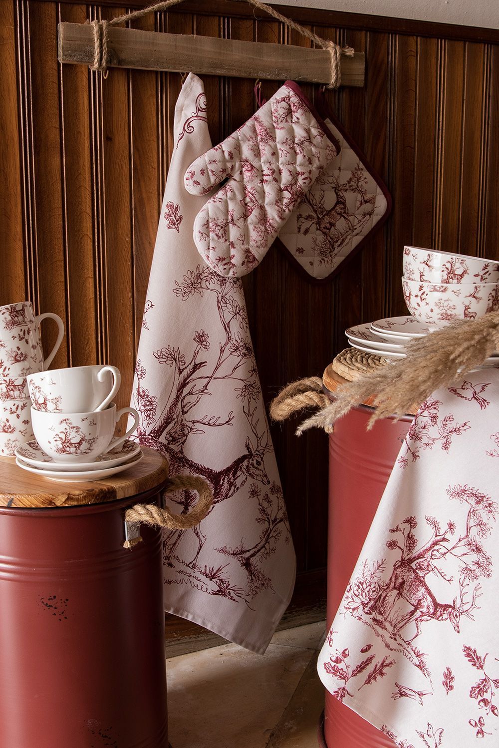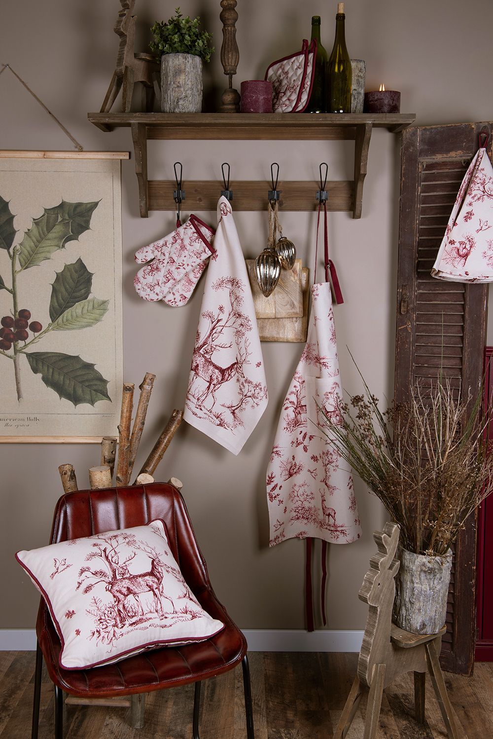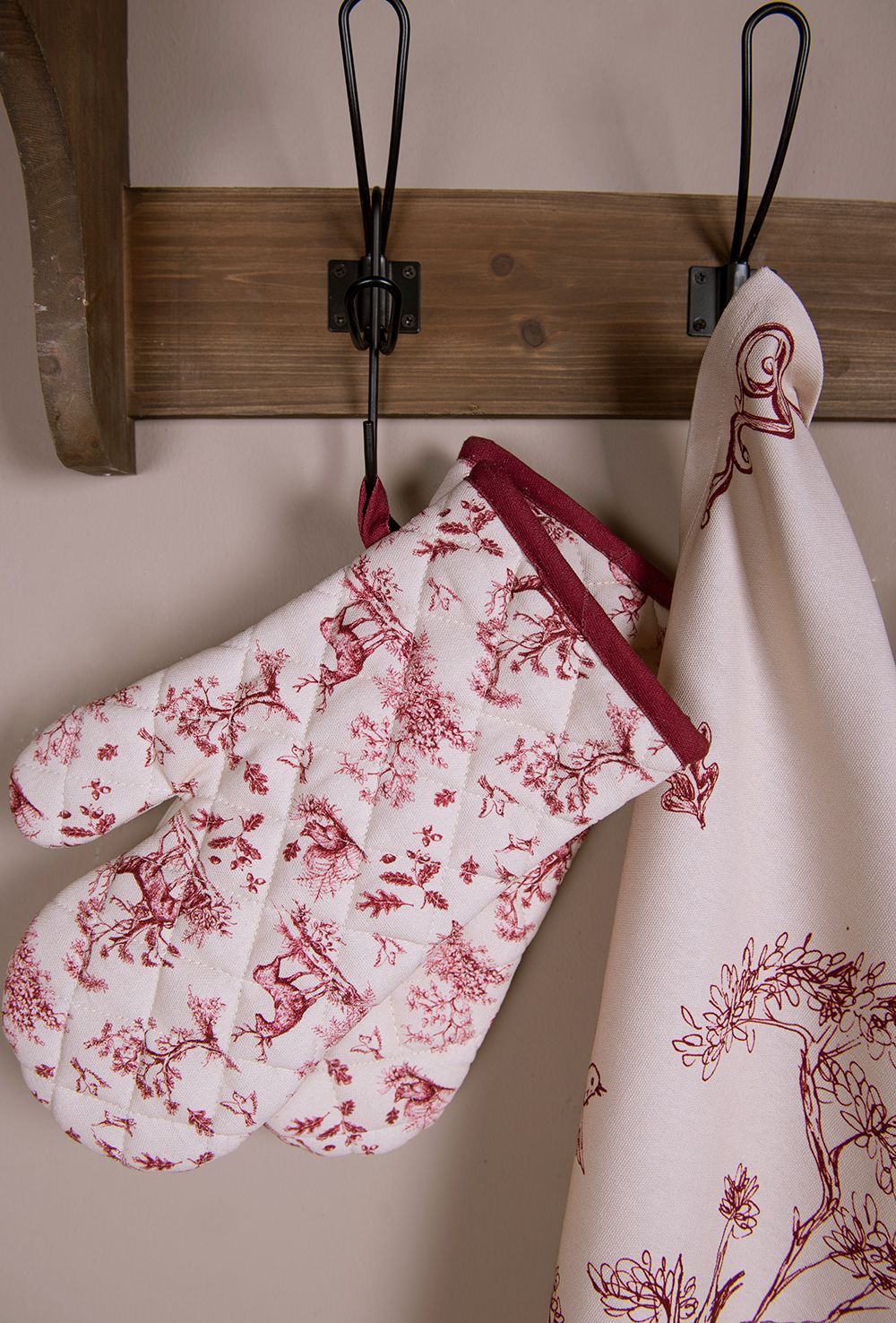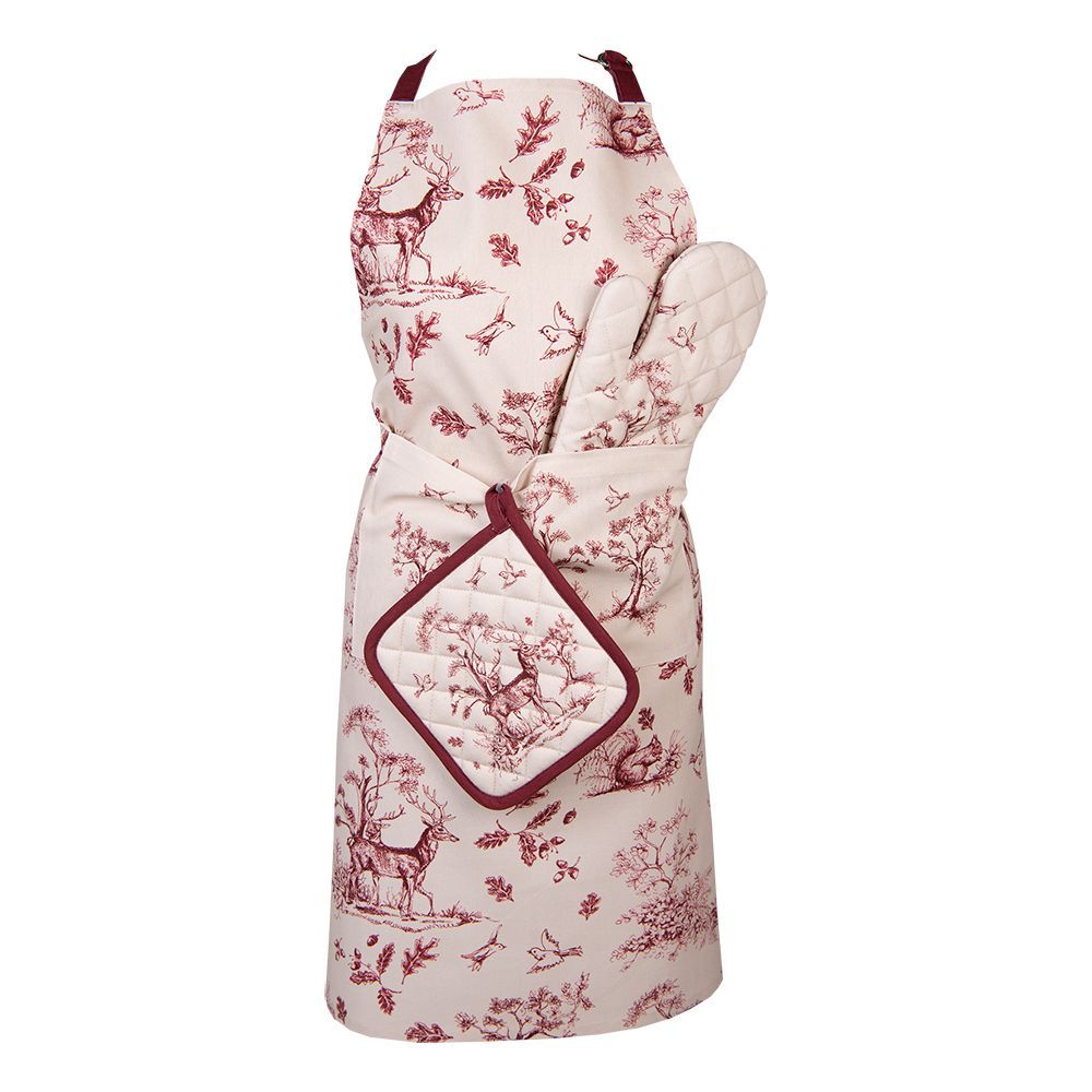 Clayre & Eef Clayre & Eef Ofenhandschuh 18x30 cm Weiß Rosa Baumwolle Rentier