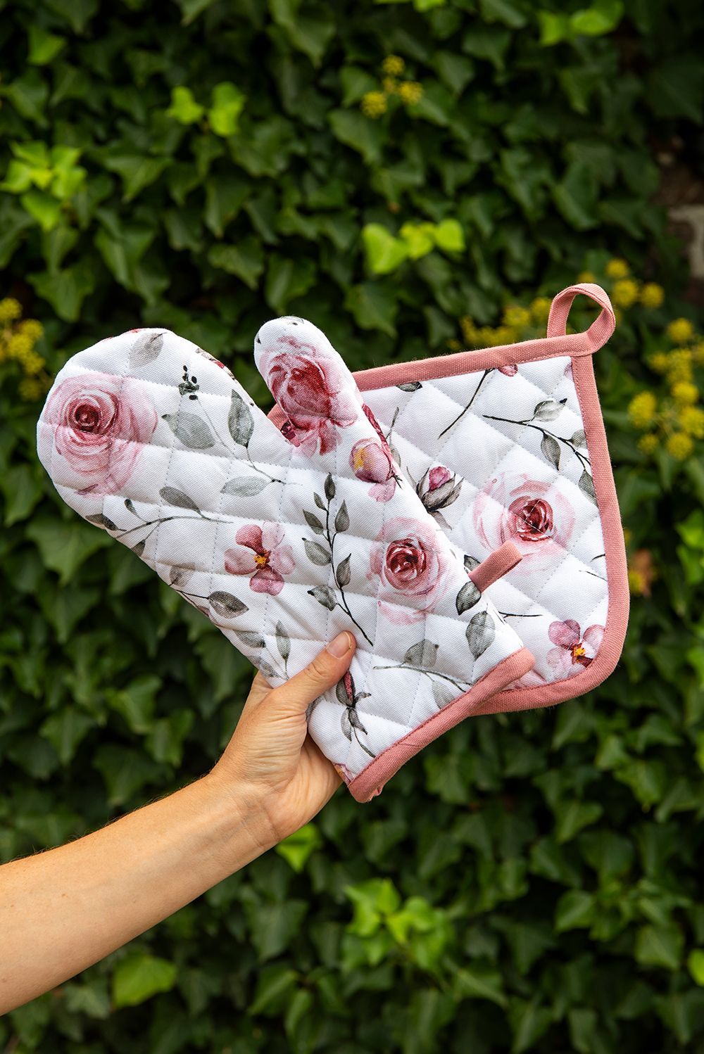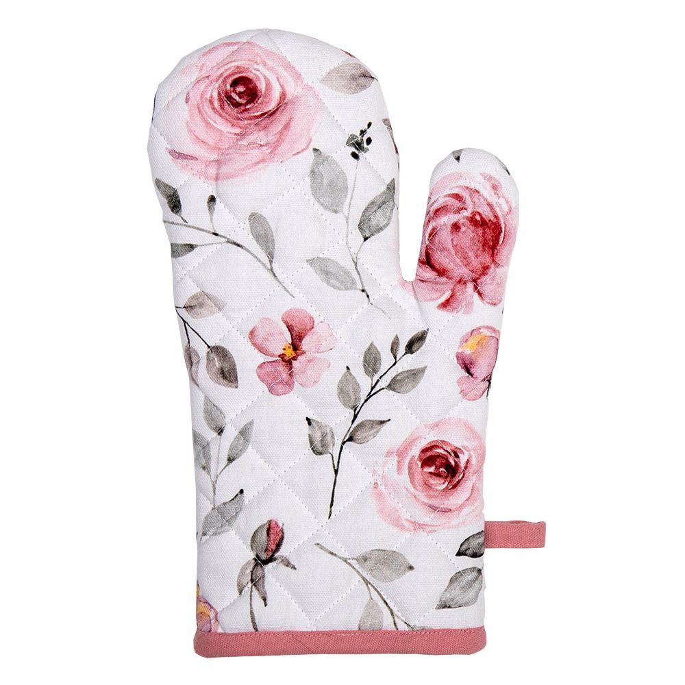 Clayre & Eef Clayre & Eef Ofenhandschuh 18x30 cm Weiß Rosa Baumwolle Rosen