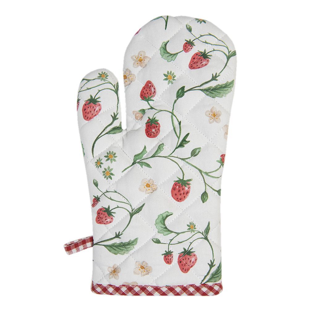 Clayre & Eef Clayre & Eef Ofenhandschuh 18x30 cm Weiß Rot Baumwolle Erdbeeren