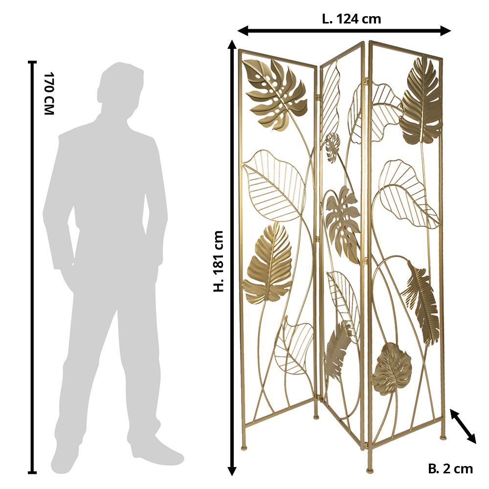 Clayre & Eef Clayre & Eef Raumteiler 124x2x181 cm Goldfarbig Eisen Blätter (Gr. 124x2x181 cm)