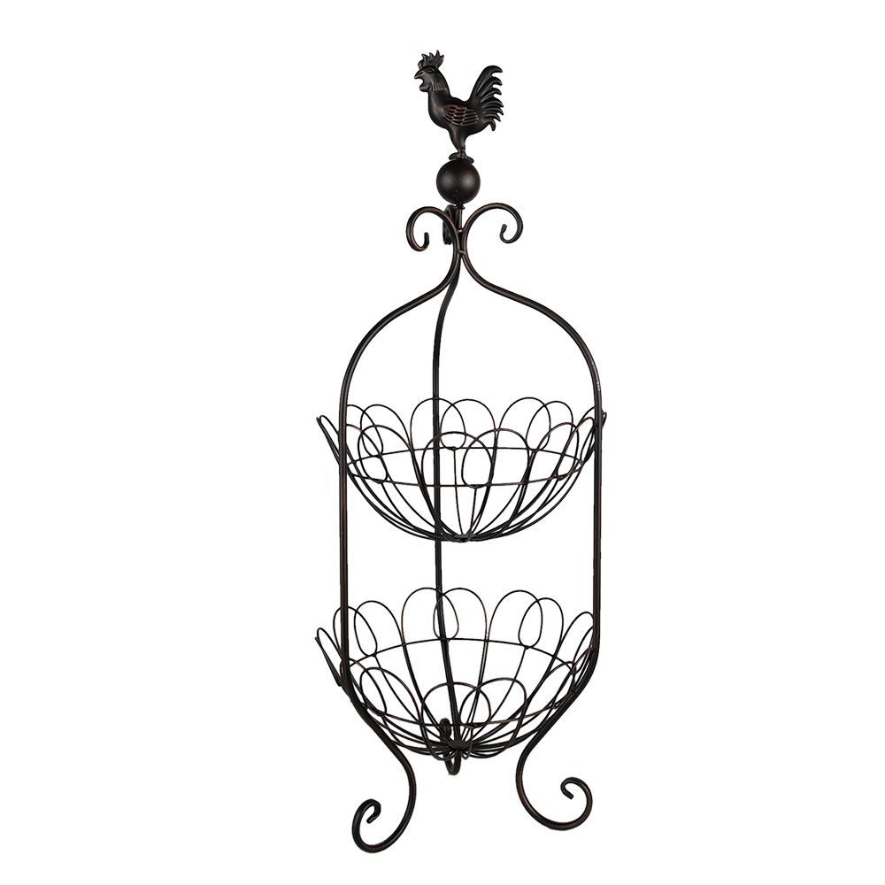 Clayre & Eef Clayre & Eef Regal mit zwei Körben Ø 26x72 cm Schwarz Eisen Huhn
