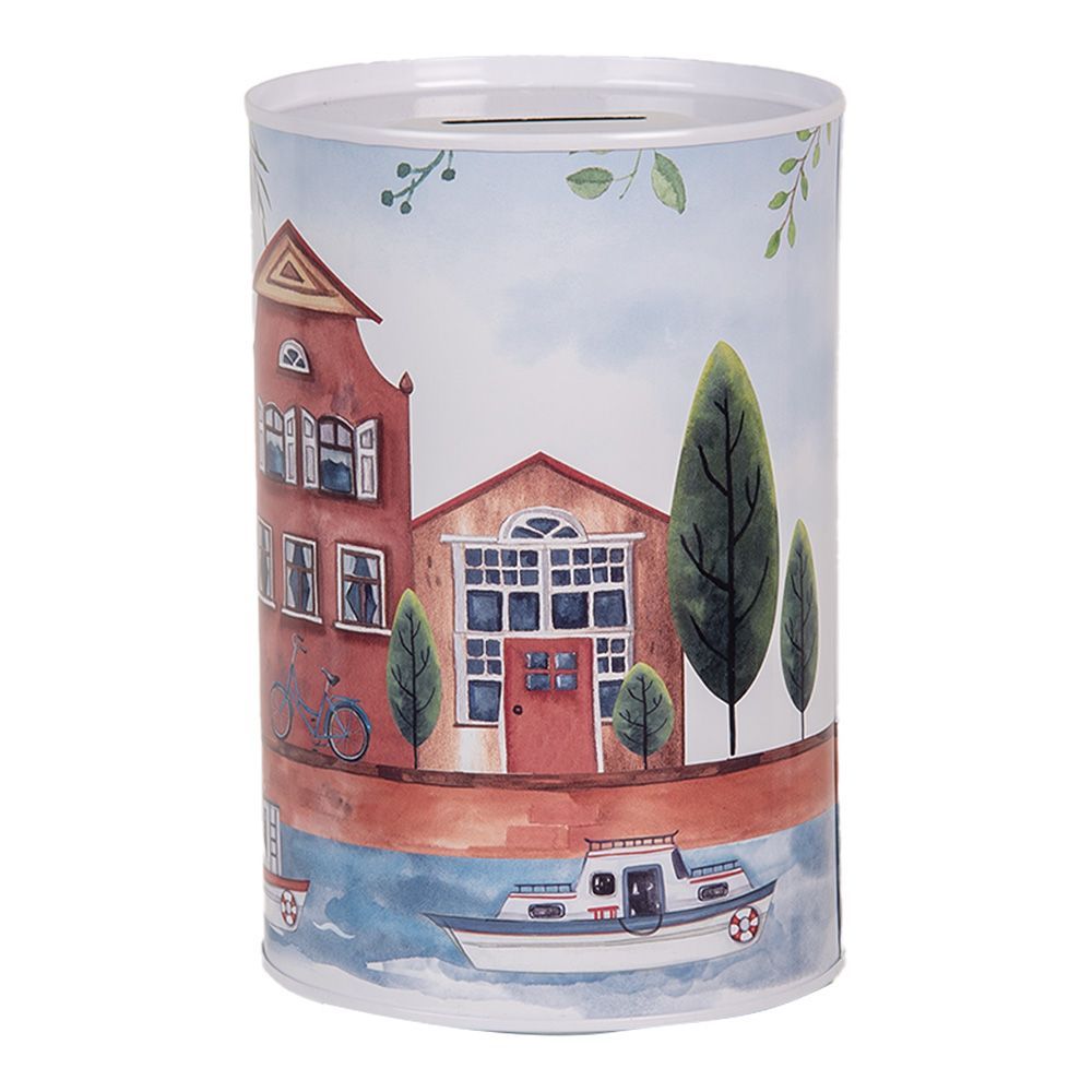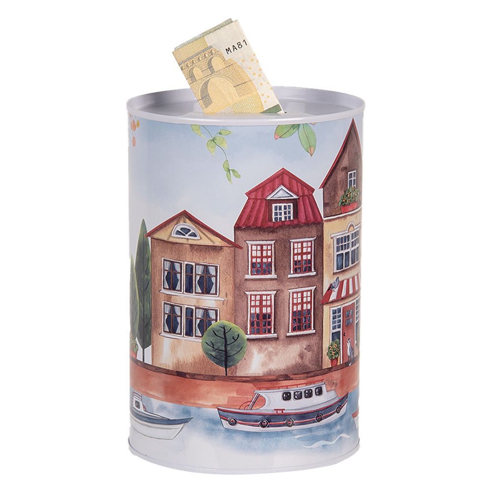 Clayre & Eef Clayre & Eef Spardosen Ø 10x15 cm Blau Metall Häuser (Gr. Ø 10x15 cm)