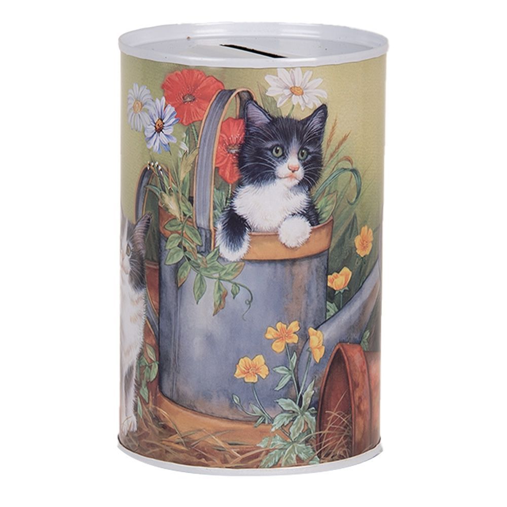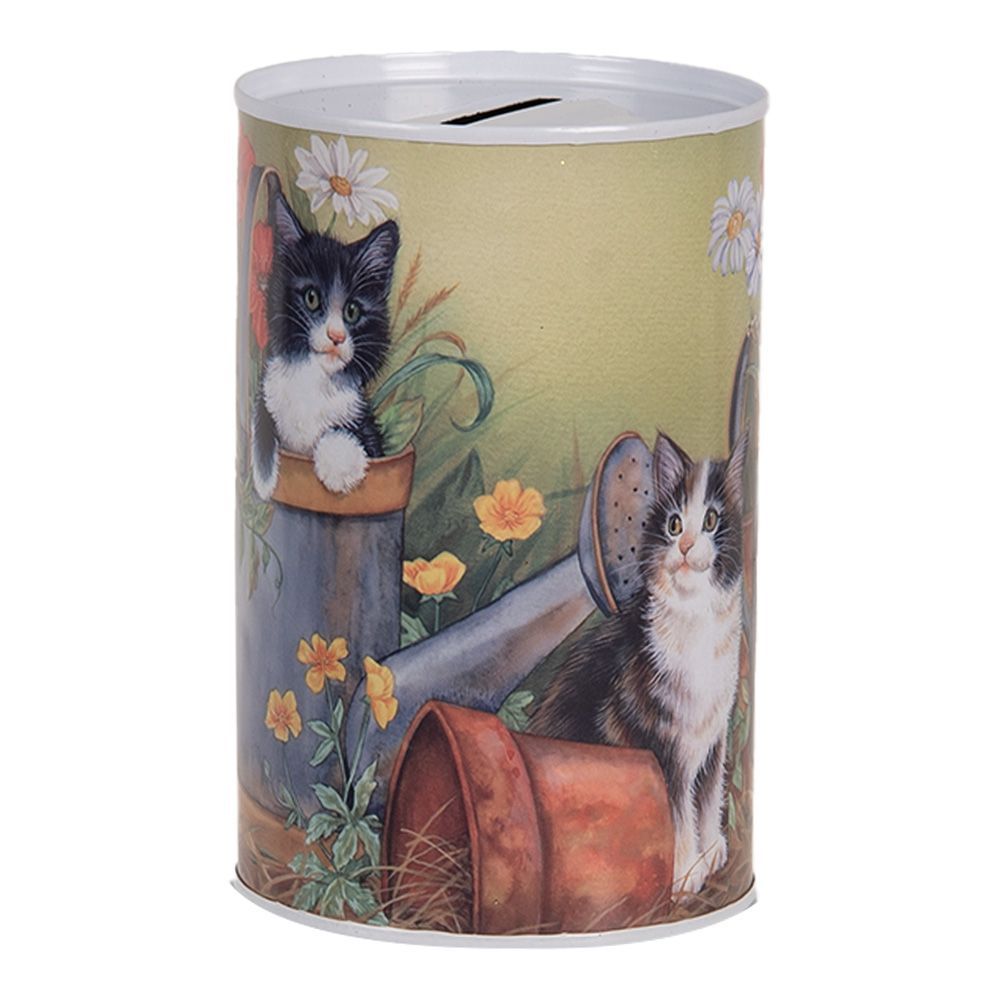 Clayre & Eef Clayre & Eef Spardosen Ø 8x13 cm Grün Metall Katze (Gr. Ø 8x13 cm)