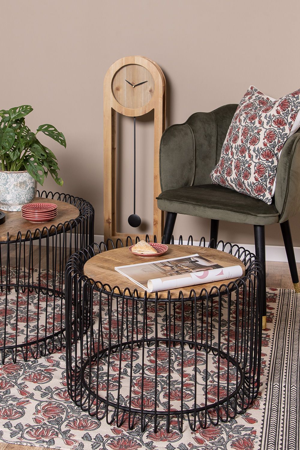 Clayre & Eef Clayre & Eef Stehende Uhr 28x100 cm Braun Schwarz Holz (Gr. 28x10x100 cm / 1xAA)