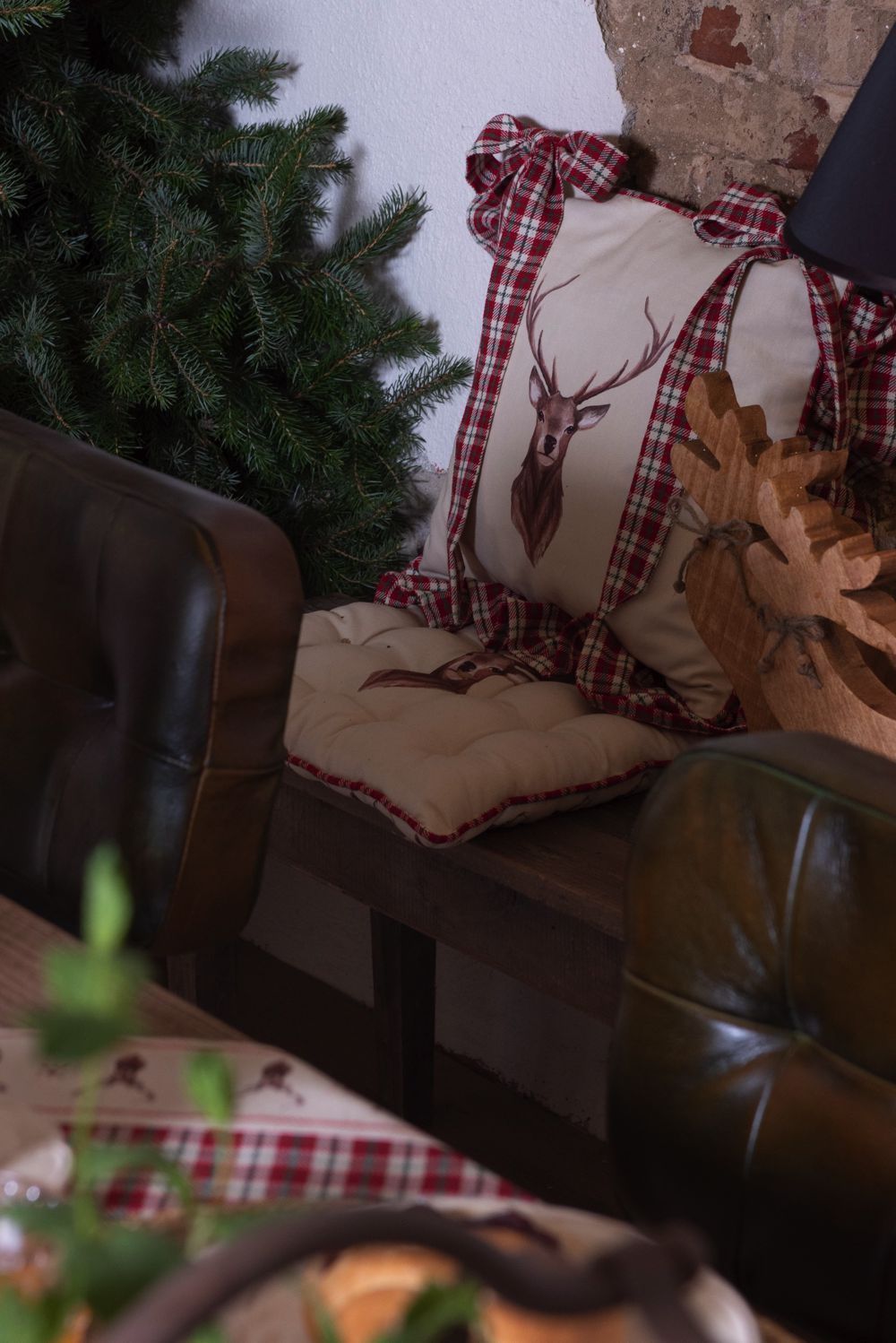 Clayre & Eef Clayre & Eef Stuhlkissen Schaumstoff 40x40 cm Beige Rot Baumwolle Hirsch