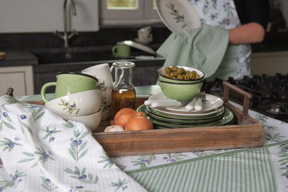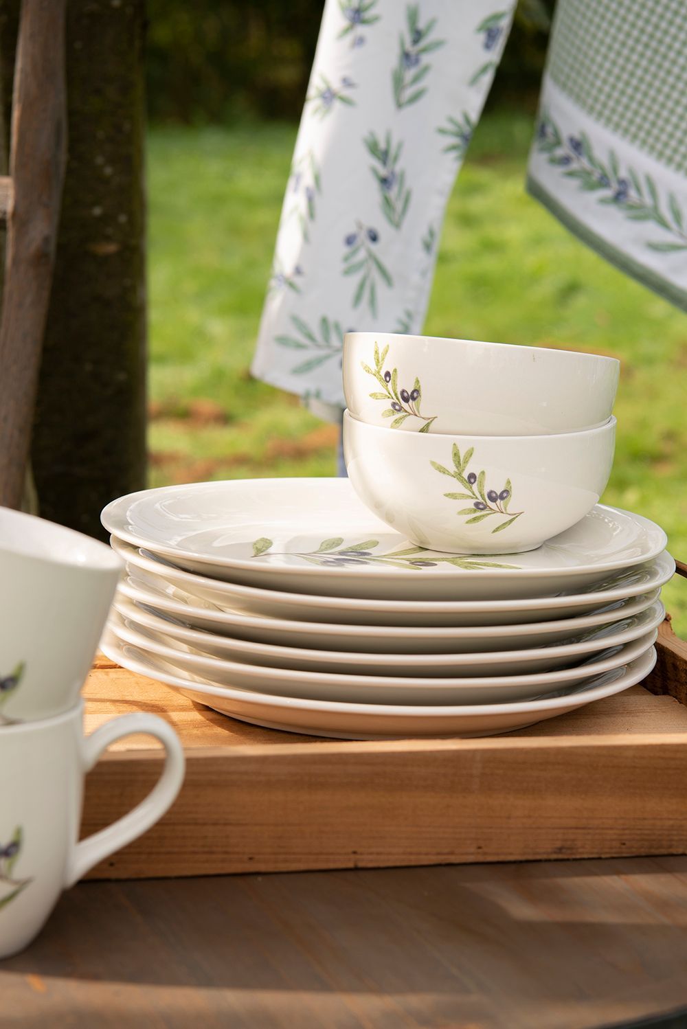 Clayre & Eef Clayre & Eef Suppenschale Ø 14x6 cm Beige Blau Keramik Olivenzweig