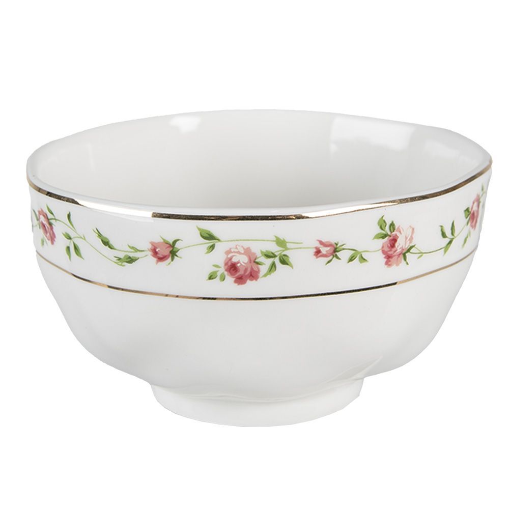 Clayre & Eef Clayre & Eef Suppenschale 300 ml Weiß Rosa Porzellan Blumen (Gr. Ø 11x6 cm / 300 ml)