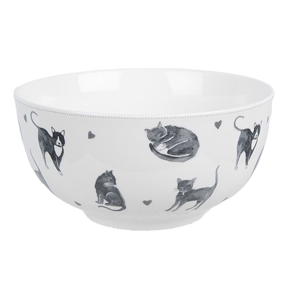 Clayre & Eef Clayre & Eef Suppenschale 500 ml Weiß Keramik Katzen (Gr. Ø 14x7 cm / 500 ml)