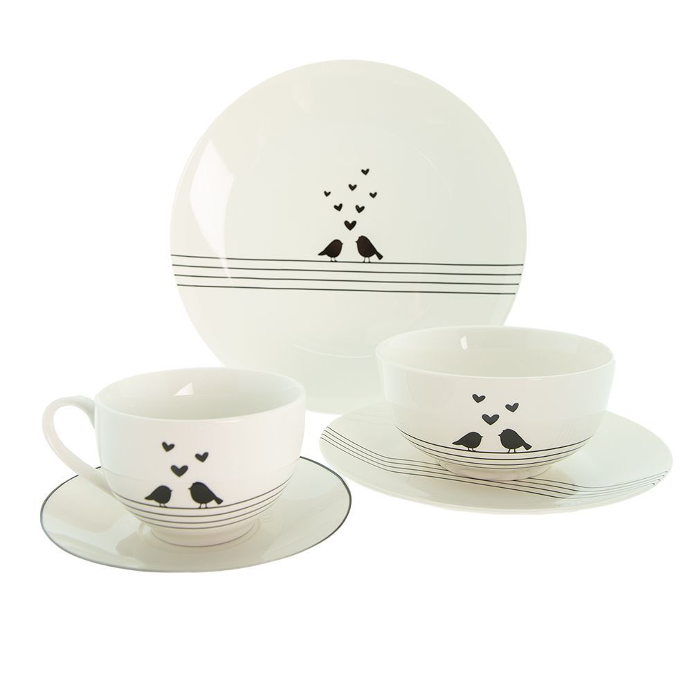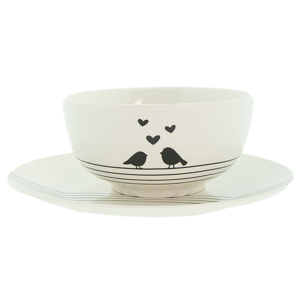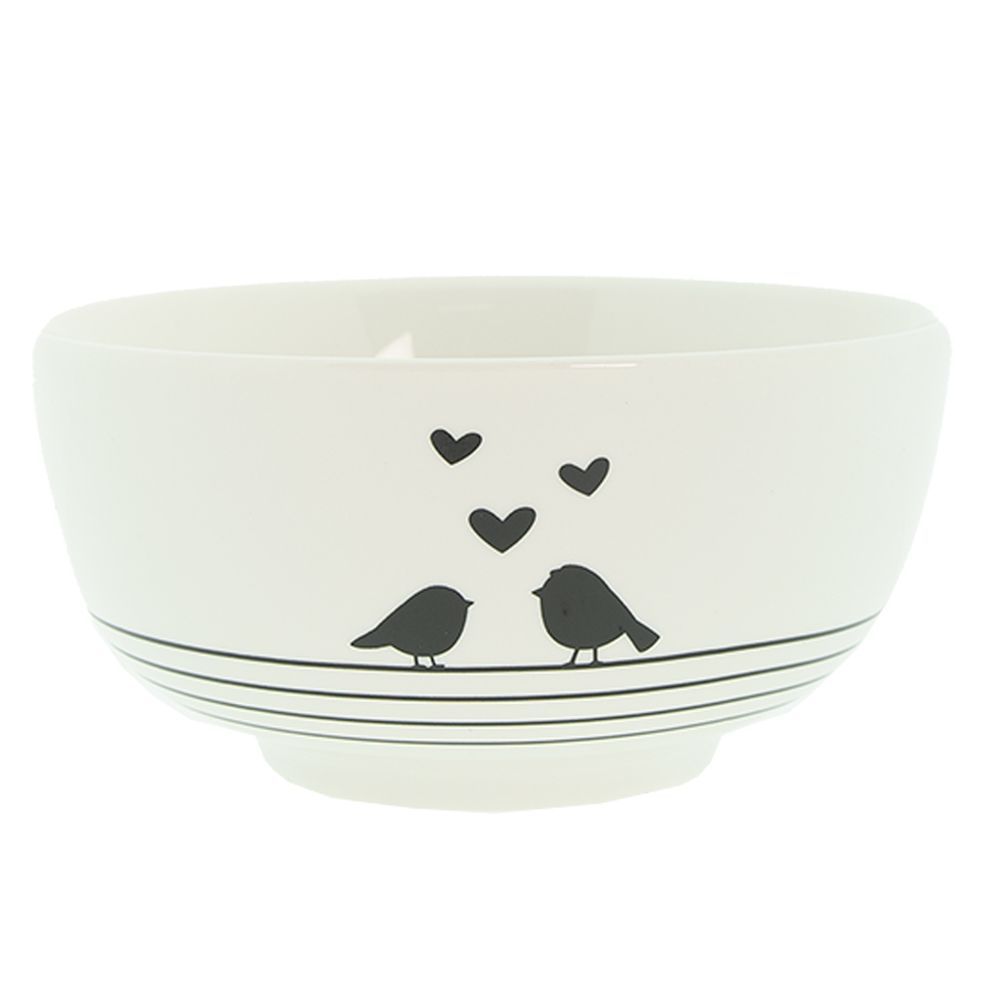 Clayre & Eef Clayre & Eef Suppenschale 500 ml Weiß Schwarz Porzellan Herzen Vögel