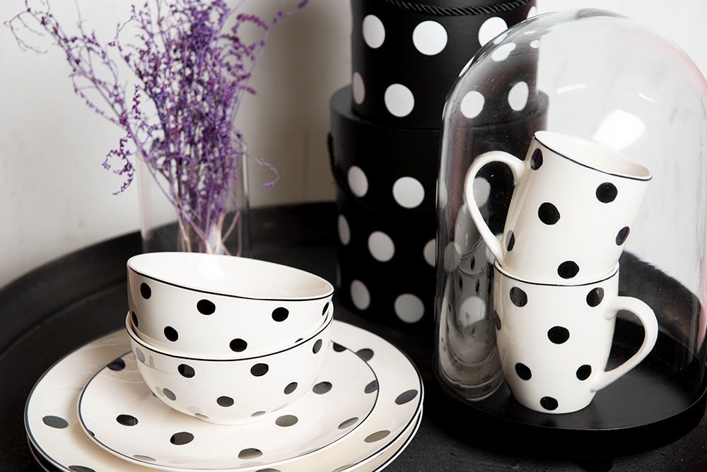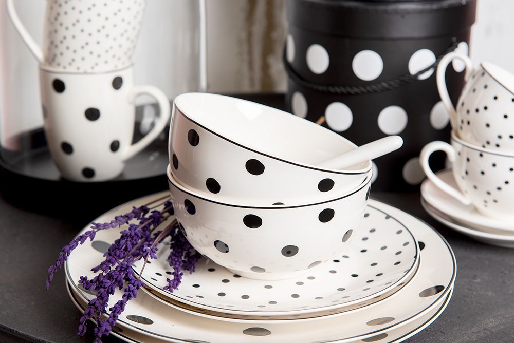 Clayre & Eef Clayre & Eef Suppenschale 500 ml Weiß Schwarz Porzellan Punkte