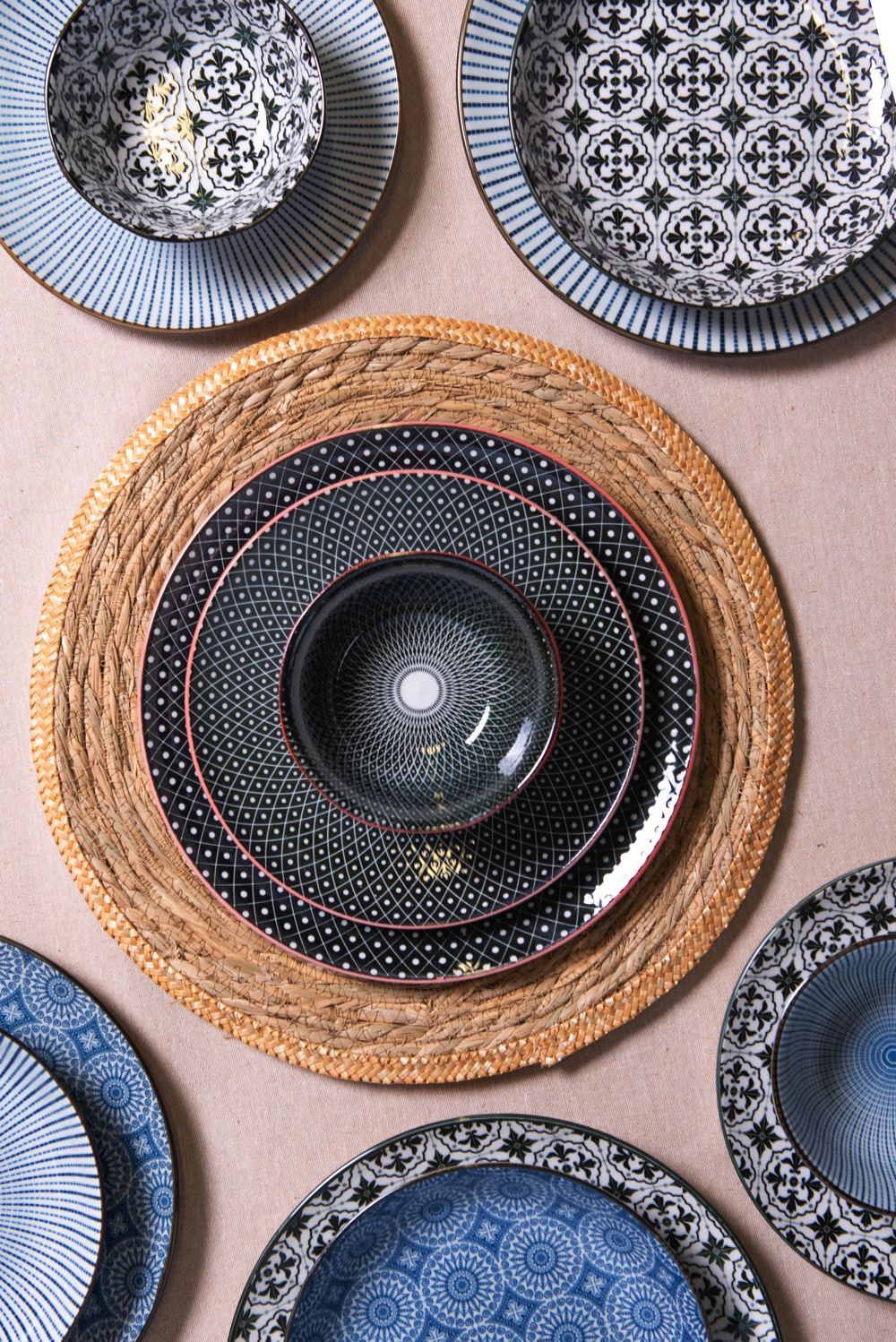 Clayre & Eef Clayre & Eef Suppenteller Ø 20x4 cm Schwarz Keramik Streifen (Gr. Ø 20x4 cm / 450 ml)
