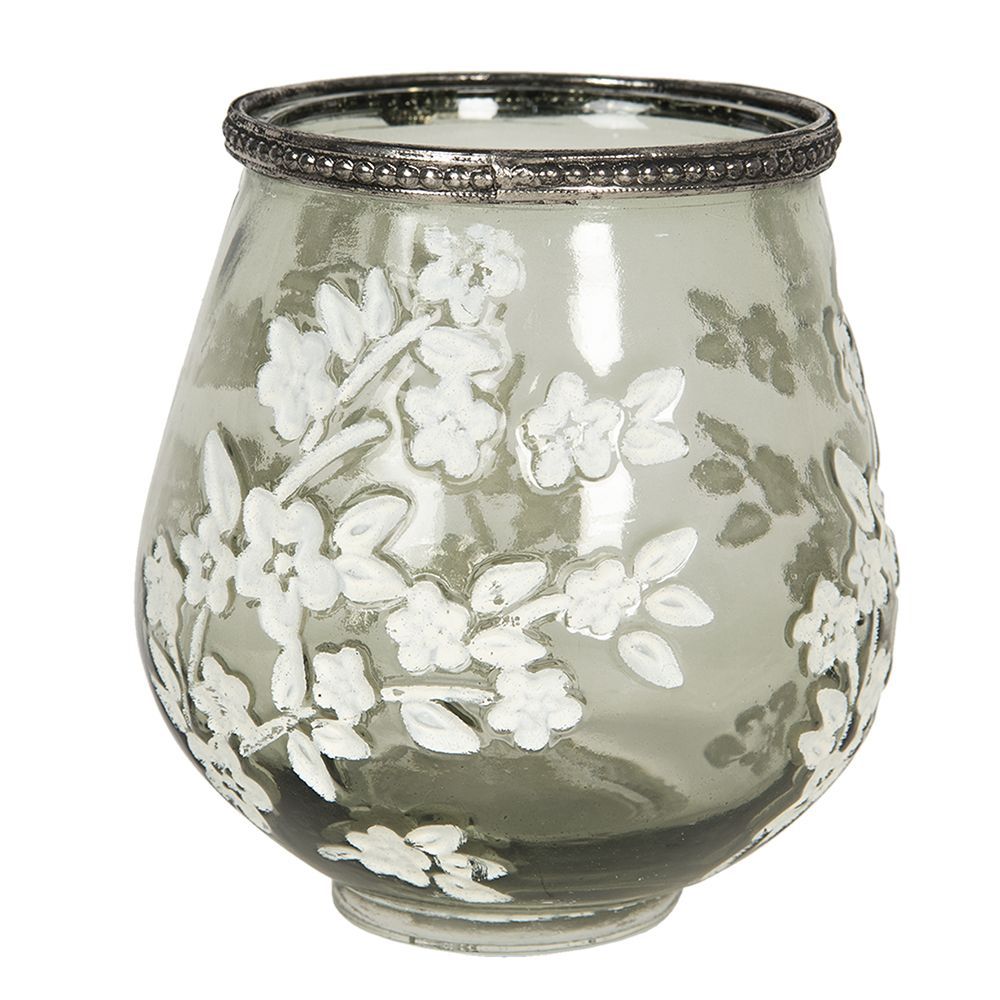 Clayre & Eef Clayre & Eef Teelichthalter Ø 12x13 cm Grün Weiß Glas Blumen (Gr. Ø 12x13 cm)