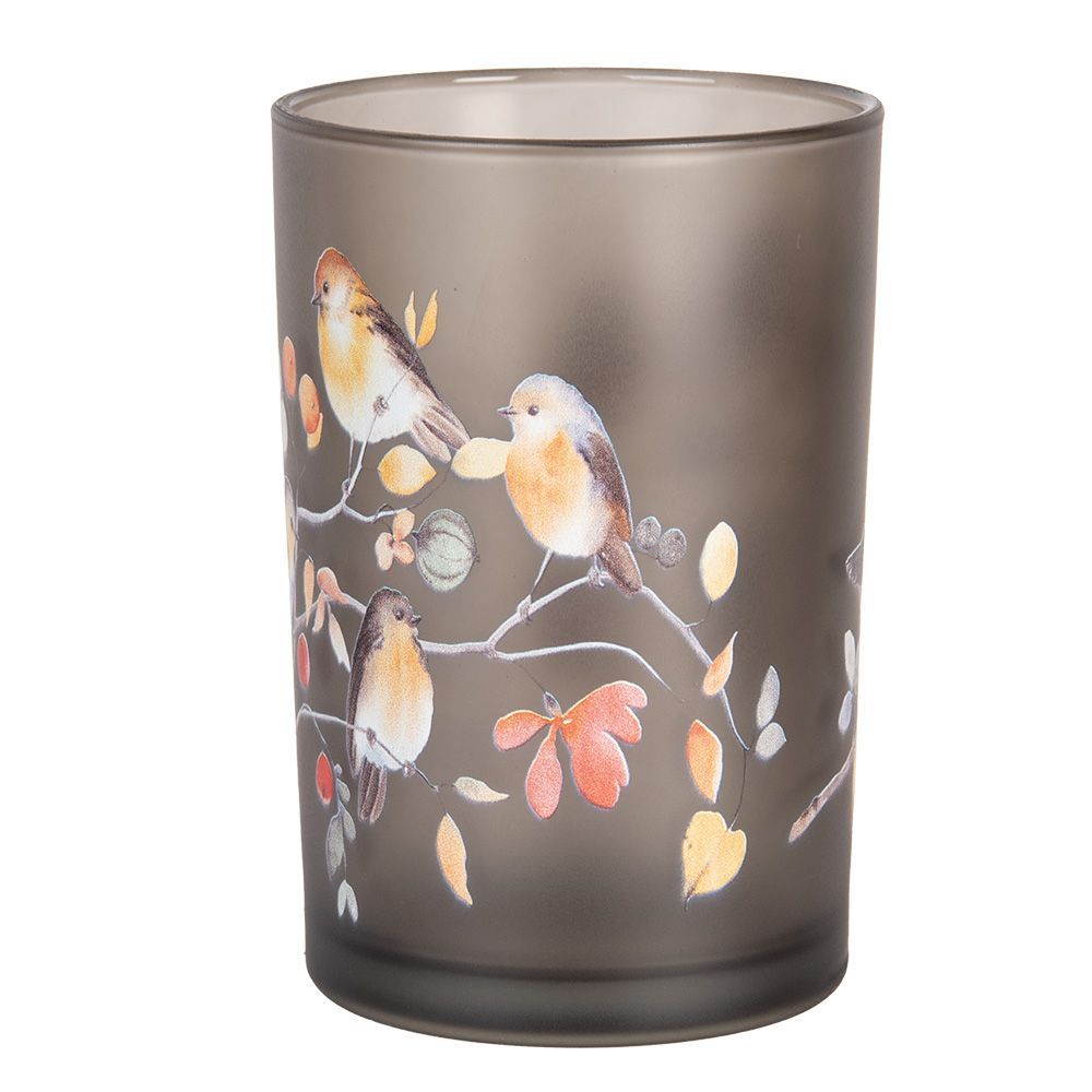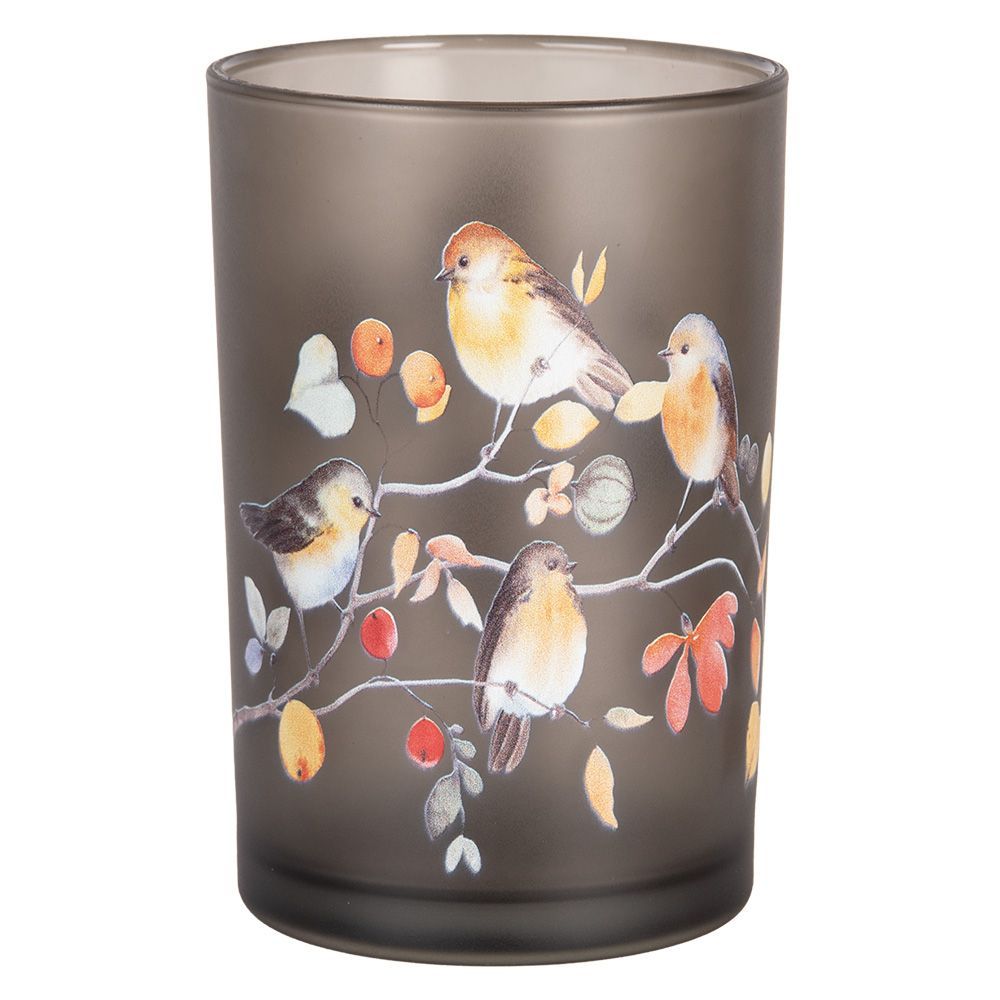 Clayre & Eef Clayre & Eef Teelichthalter Ø 12x18 cm Grau Glas Vögel auf Zweigen (Gr. Ø 12x18 cm)