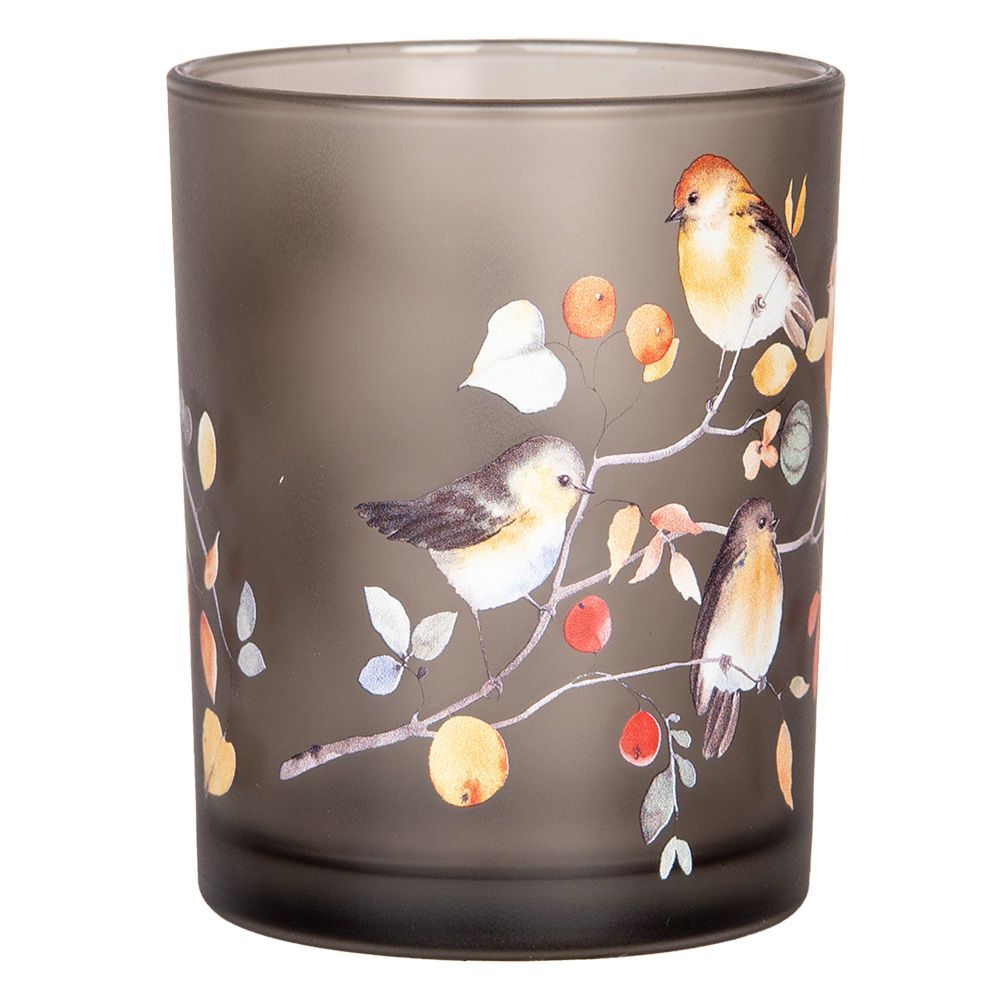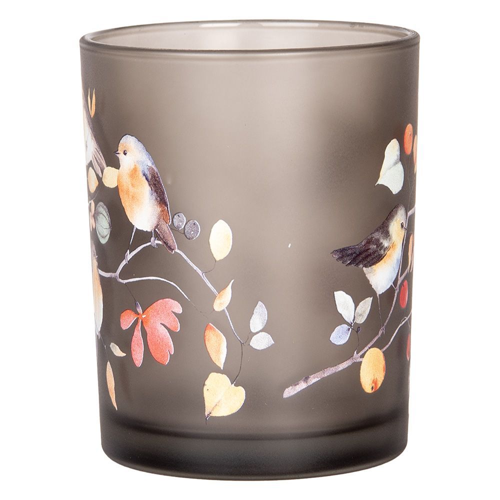 Clayre & Eef Clayre & Eef Teelichthalter 2er Set Ø 7x8 / 10x13 cm Grau Glas Vögel auf Zweigen