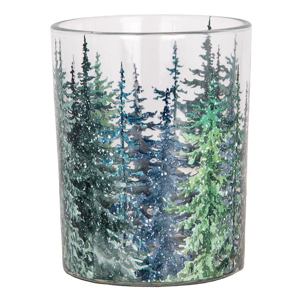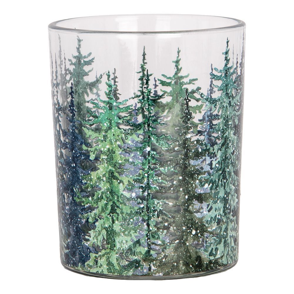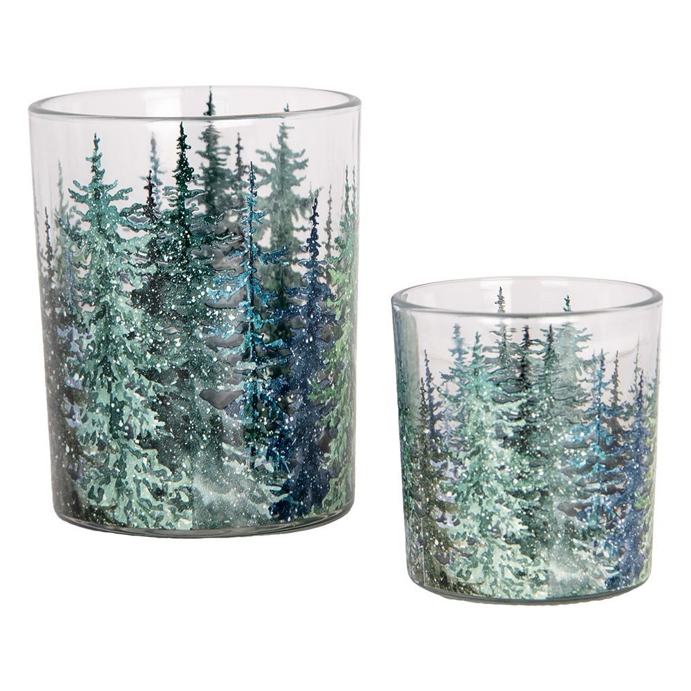 Clayre & Eef Clayre & Eef Teelichthalter 2er Set Ø 7x8 / 10x13 cm Grün Glas Tannenbäume