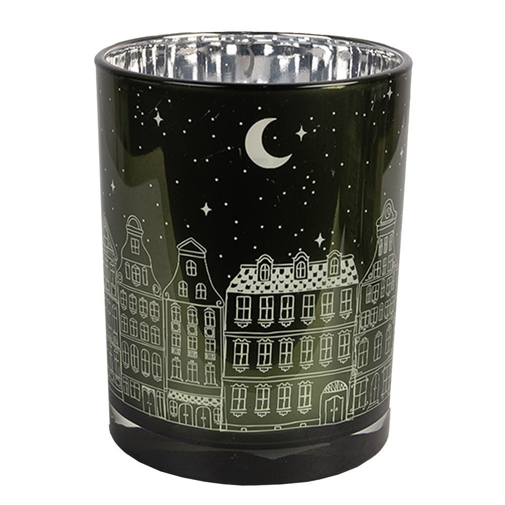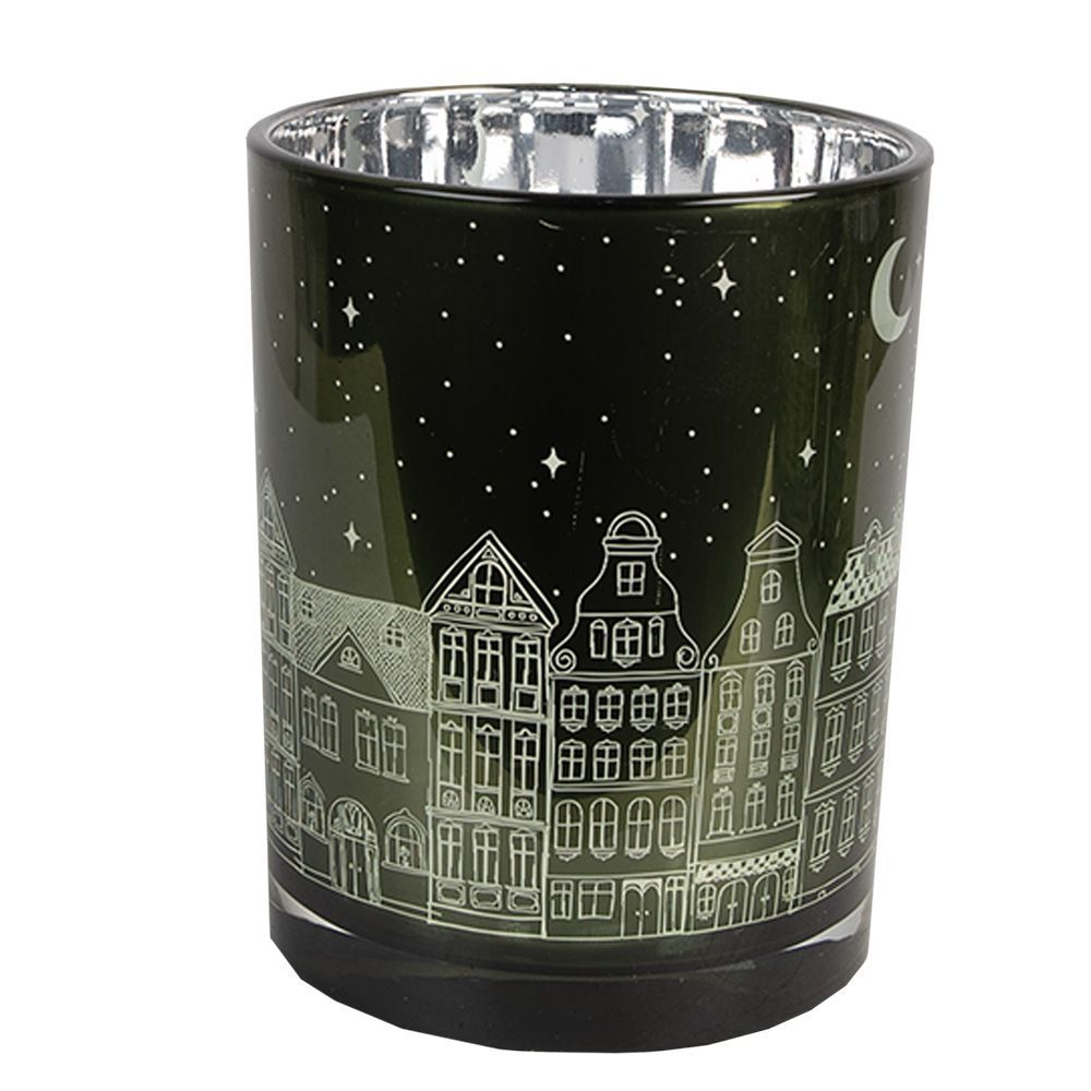 Clayre & Eef Clayre & Eef Teelichthalter 3er Set Grün Glas Häuser