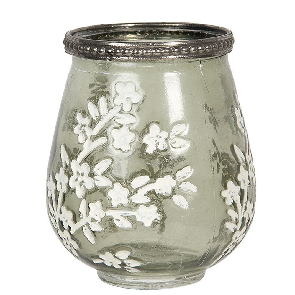 Clayre & Eef Clayre & Eef Teelichthalter Ø 9x11 cm Grün Weiß Glas Blumen (Gr. Ø 9x11 cm)