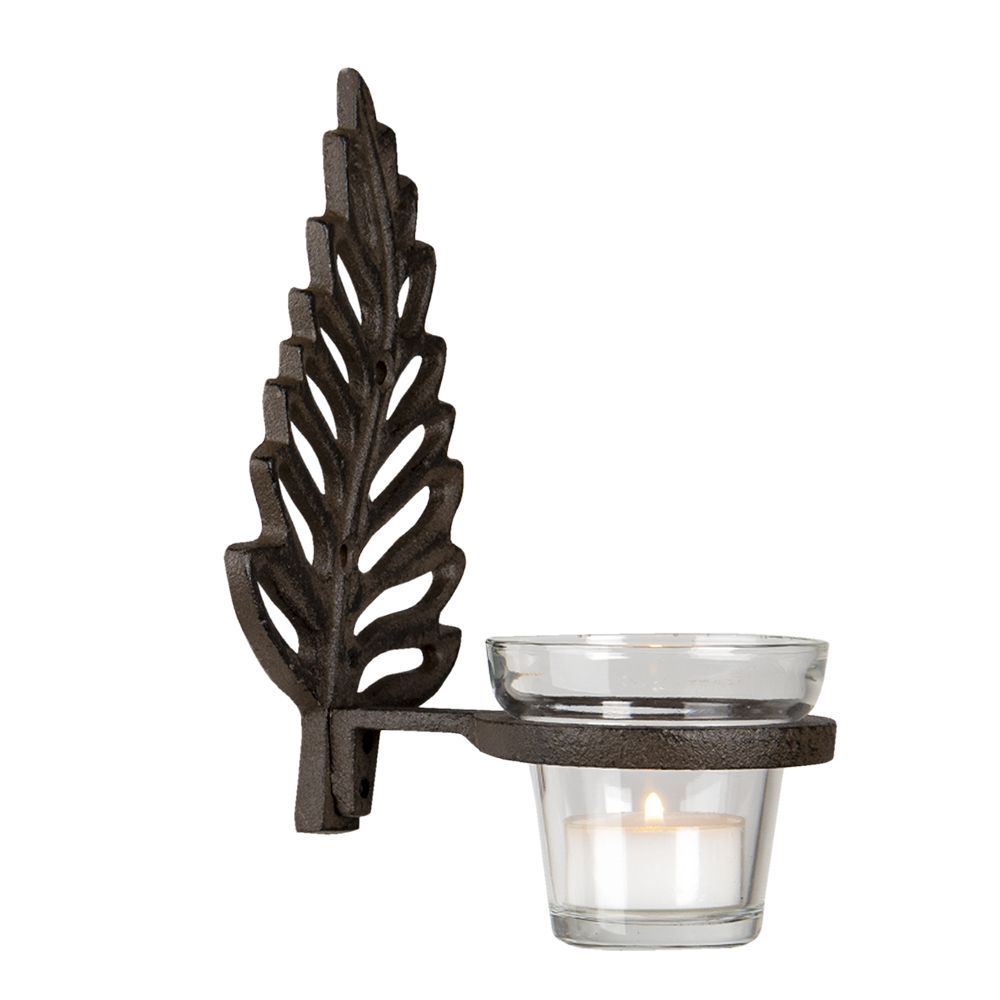Clayre & Eef Clayre & Eef Teelichthalter Feder 10x12x19 cm Braun Eisen (Gr. 10x12x19 cm)