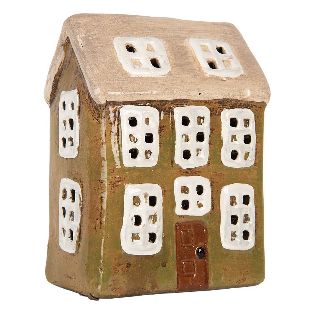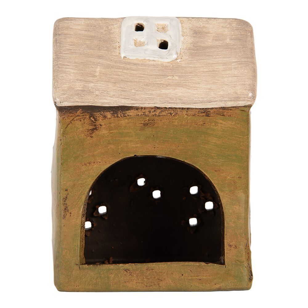 Clayre & Eef Clayre & Eef Teelichthalter Haus 10x7x14 cm Grün Keramik (Gr. 10x7x14 cm)