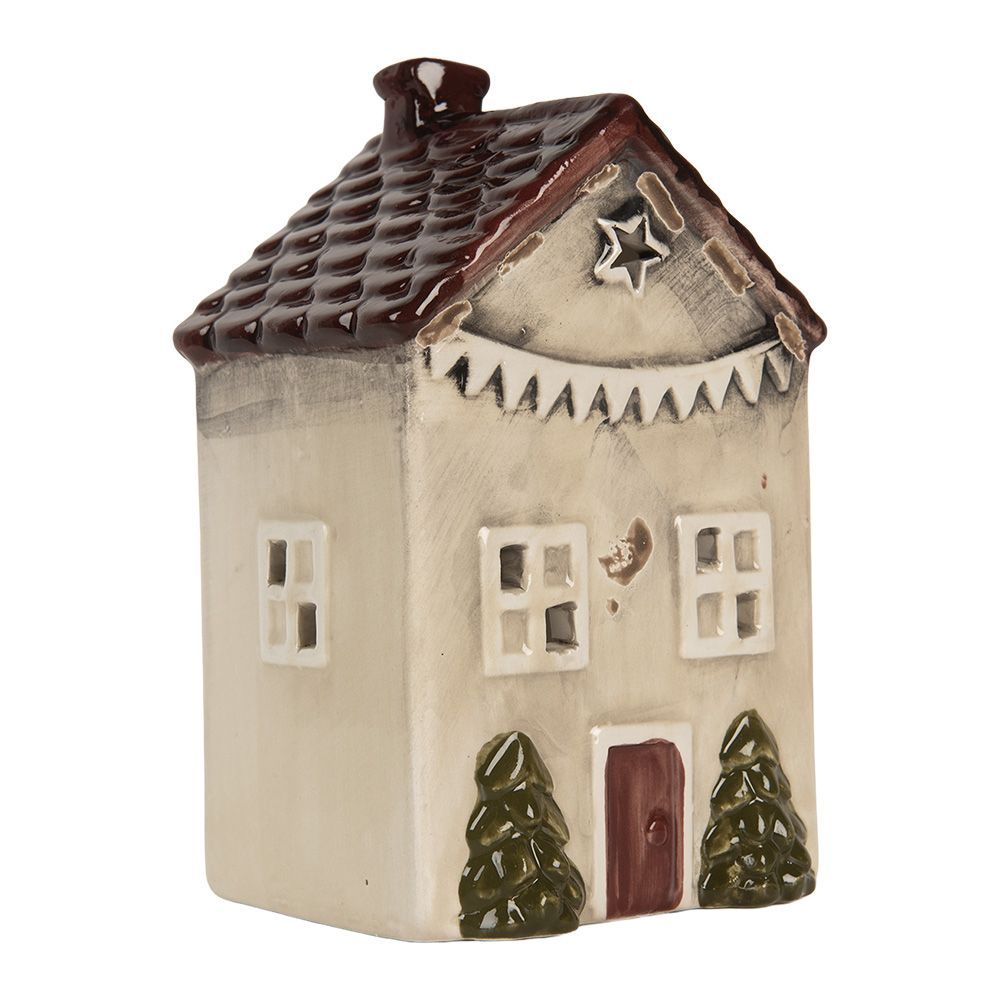 Clayre & Eef Clayre & Eef Teelichthalter Haus 10x8x15 cm Beige Keramik (Gr. 10x8x15 cm)