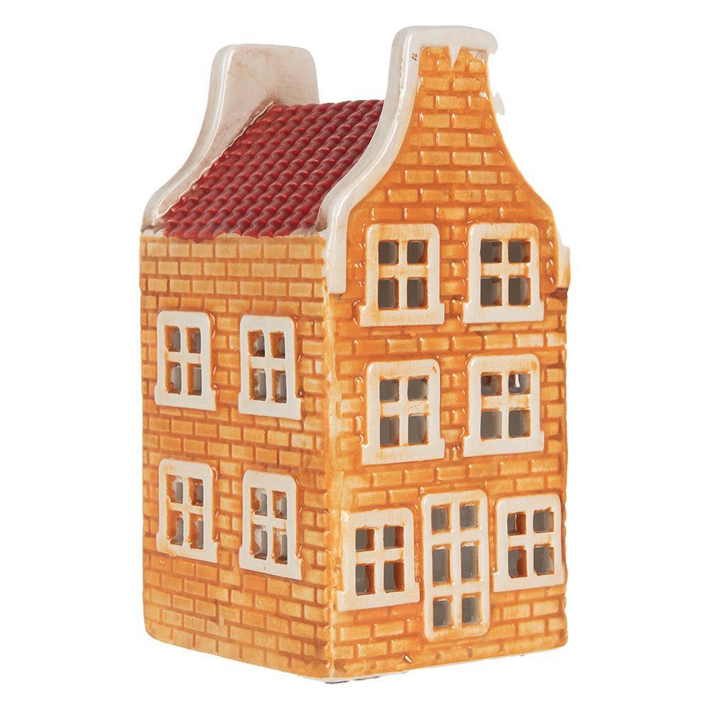 Clayre & Eef Clayre & Eef Teelichthalter Haus 9x10x19 cm Orange Keramik (Gr. 9x10x19 cm)