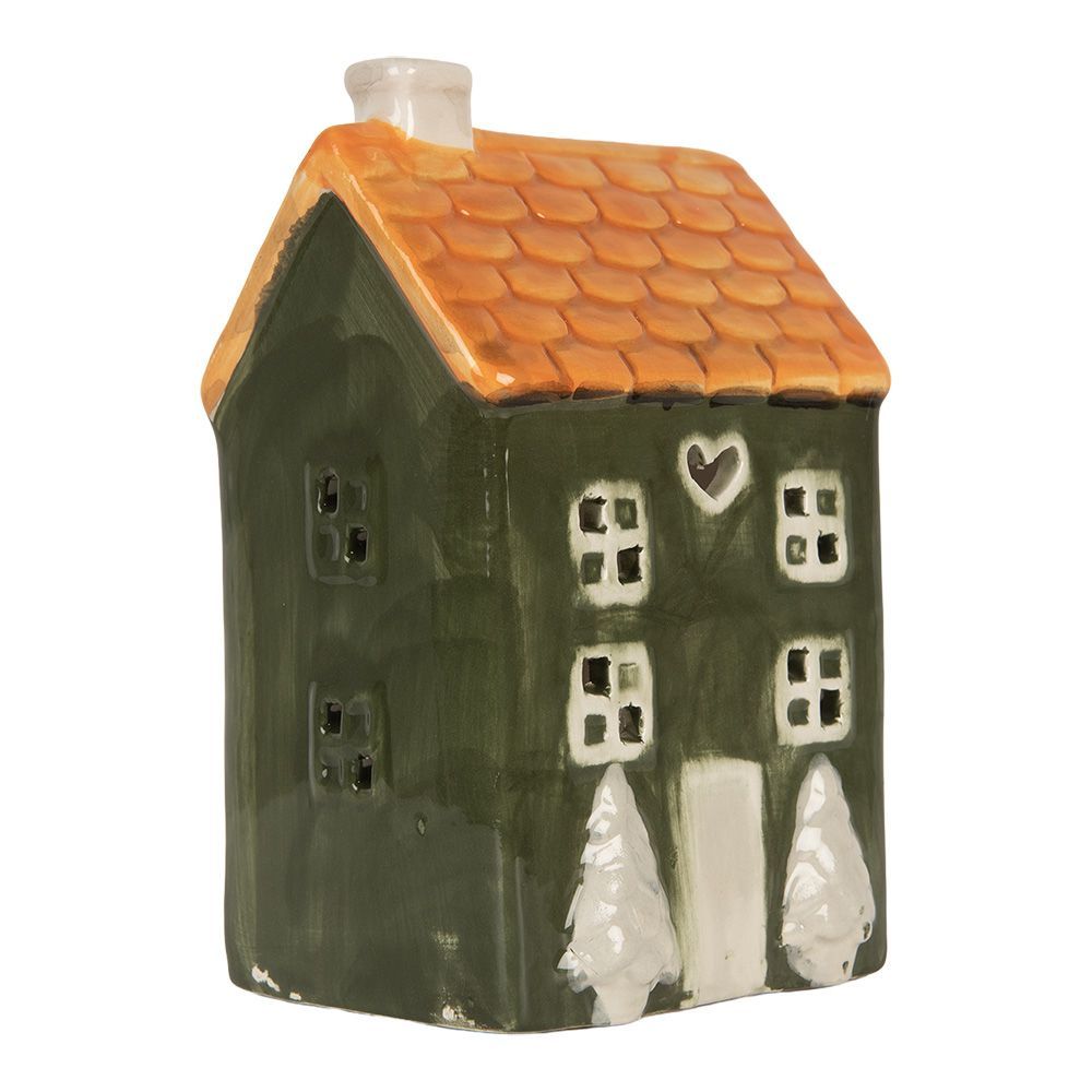 Clayre & Eef Clayre & Eef Teelichthalter Haus 9x8x15 cm Grün Keramik (Gr. 9x8x15 cm)