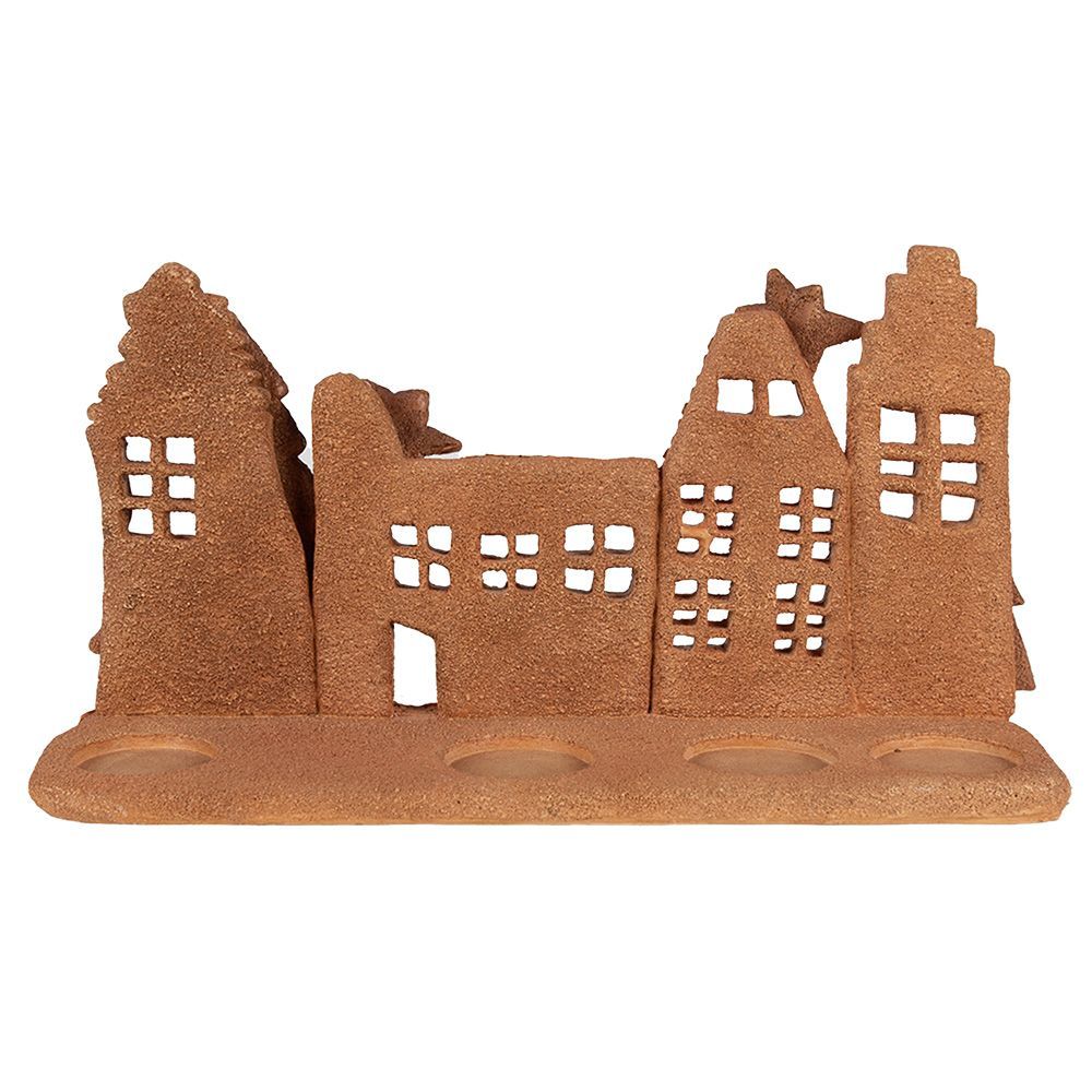 Clayre & Eef Clayre & Eef Teelichthalter Lebkuchenhaus 27x9x15 cm Braun Polyresin (Gr. 27x9x15 cm)