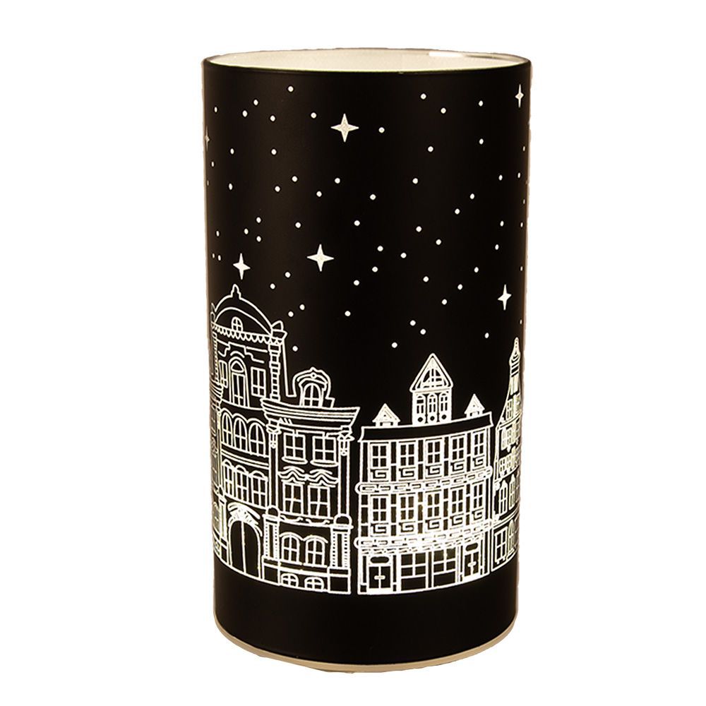 Clayre & Eef Clayre & Eef Teelichthalter mit LED Ø 8x12 cm Schwarz Silberfarbig Glas