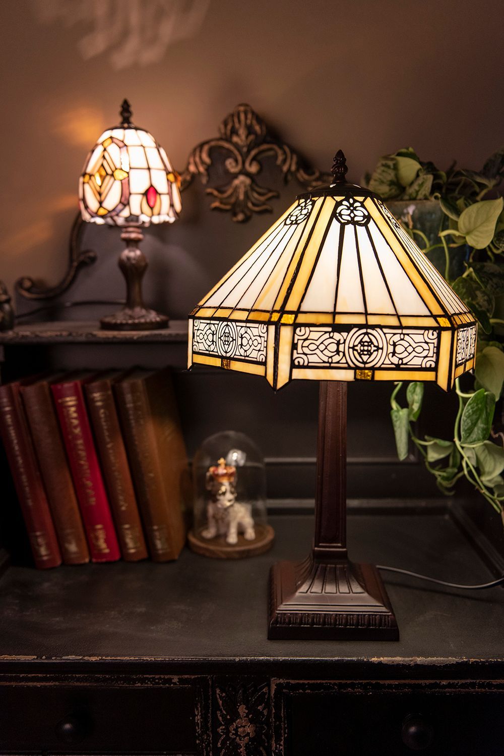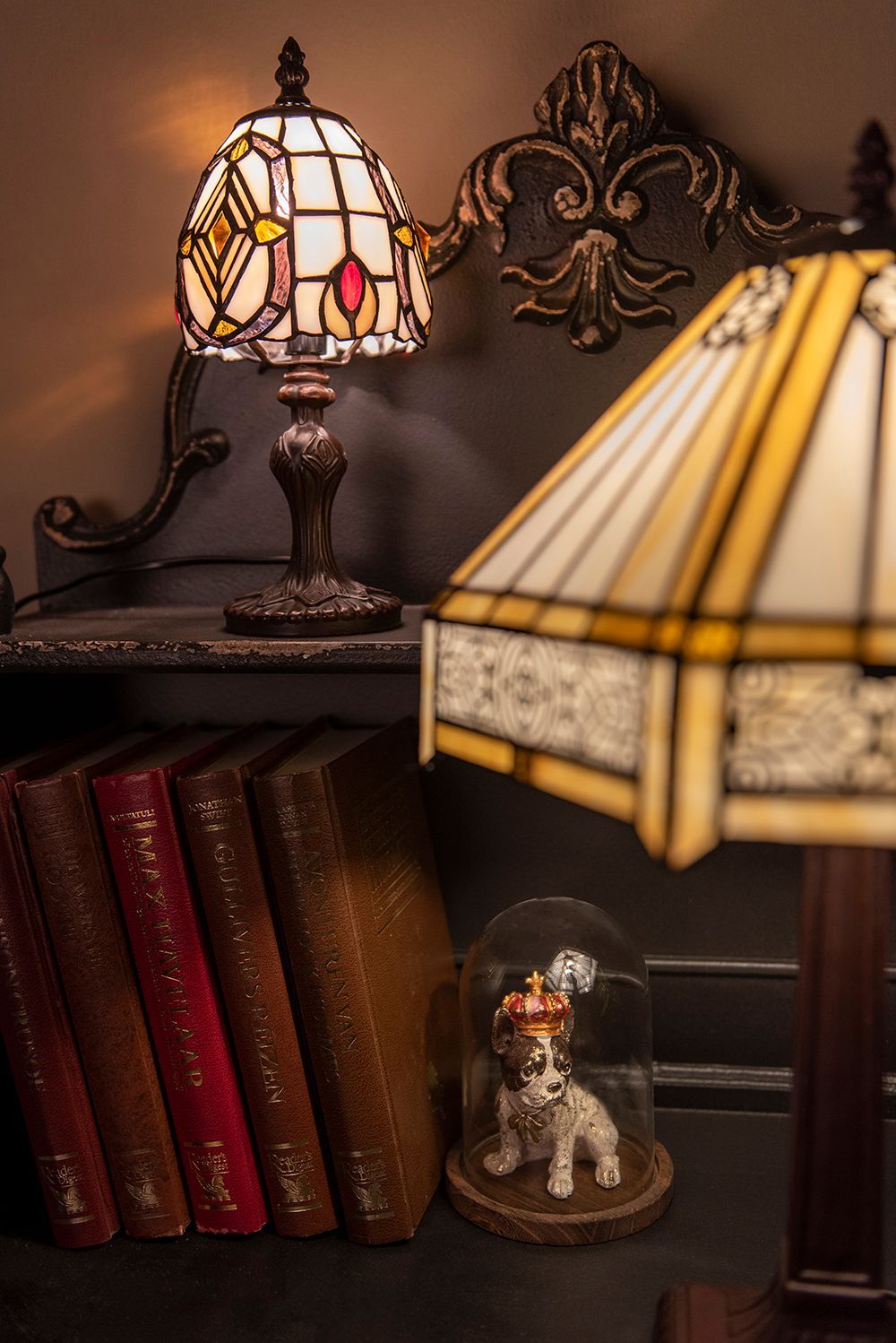Clayre & Eef Tiffany Tischlampe Ø 13x 29 cm Weiß Braun Polyresin