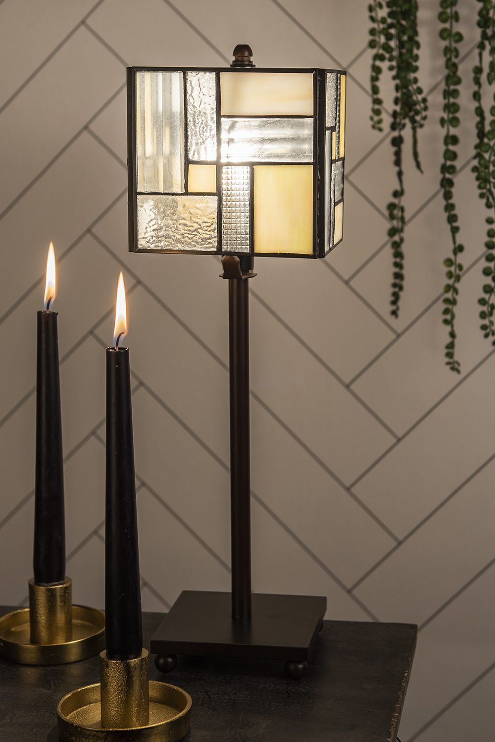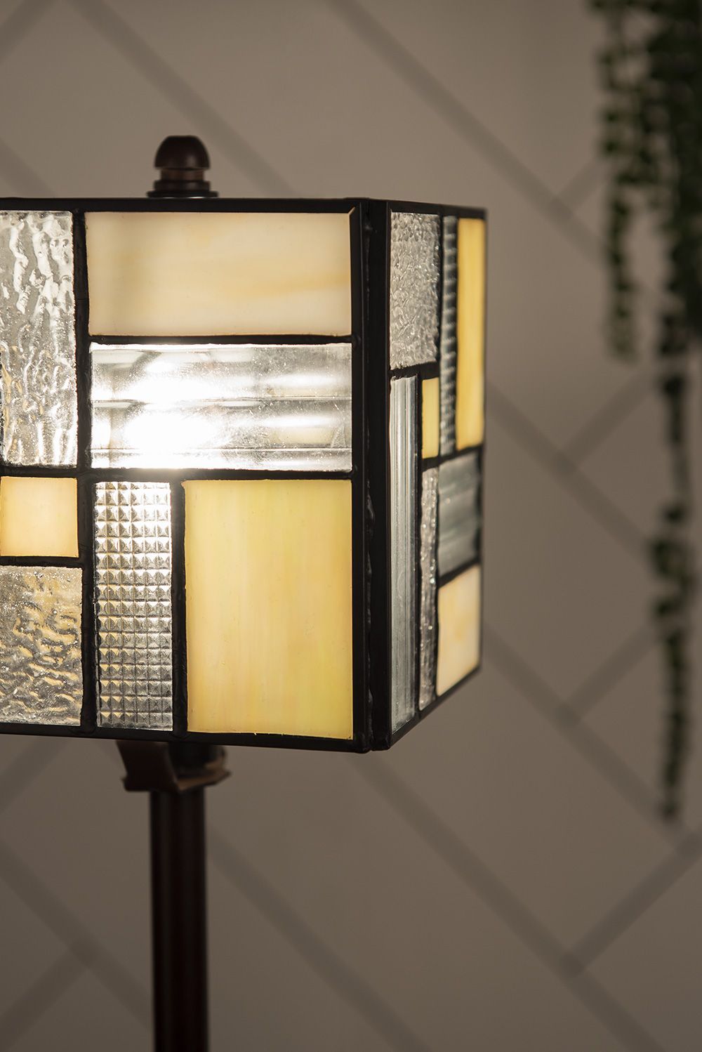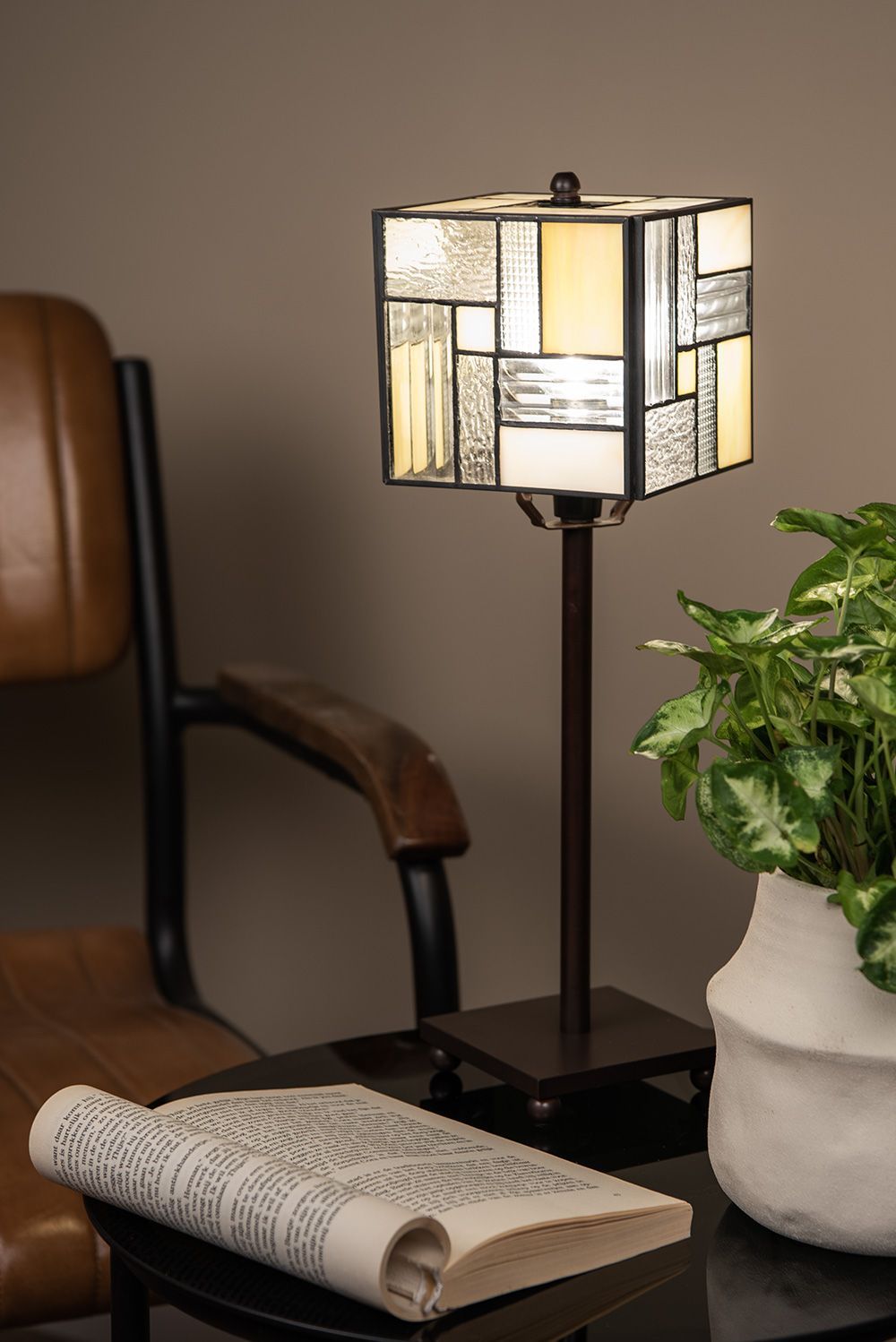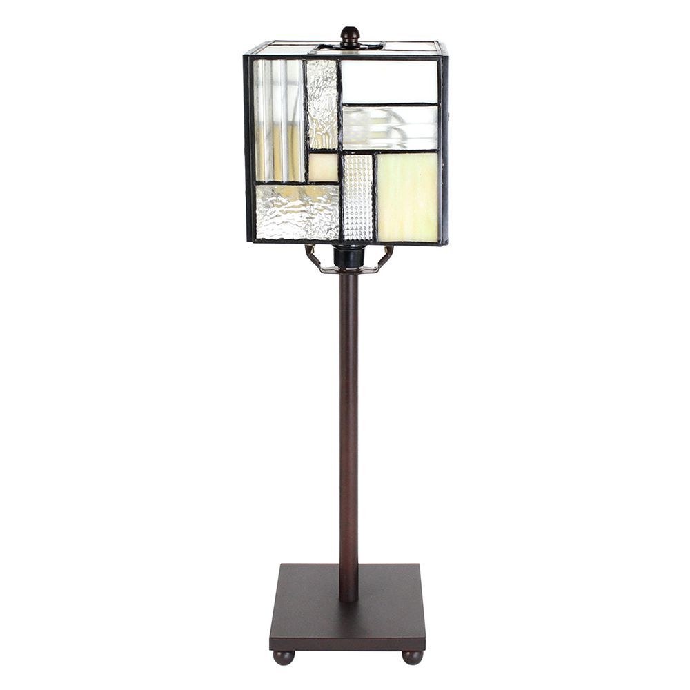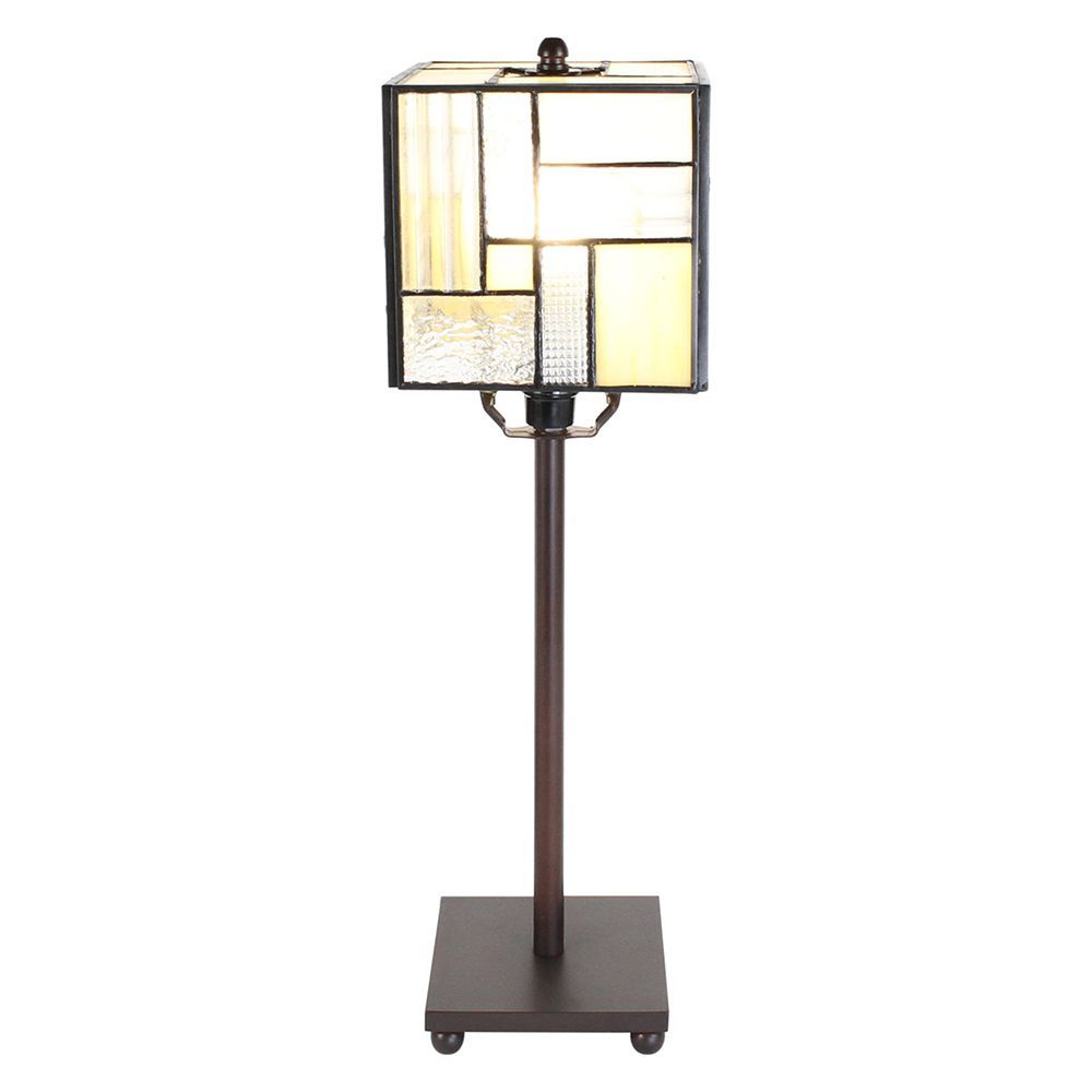 Clayre & Eef Tiffany Tischlampe 13x13x28 cm Weiß Beige Glas