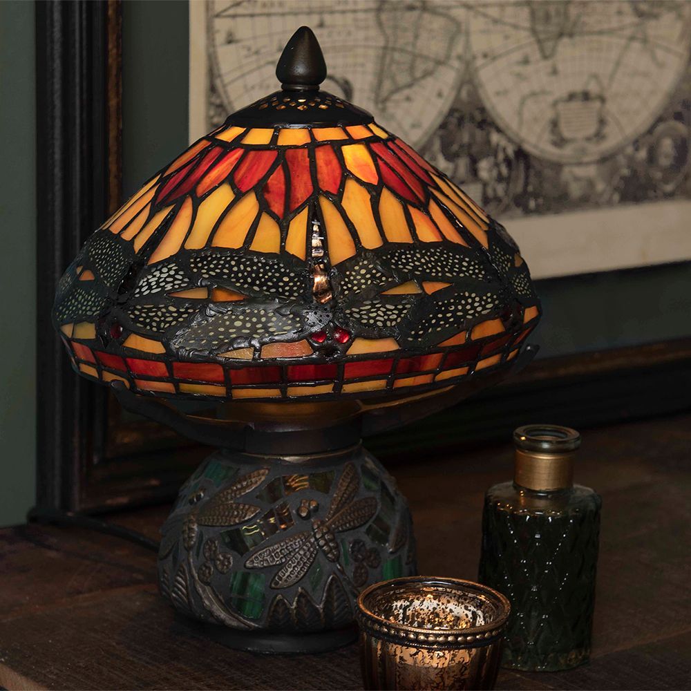 Clayre & Eef Tiffany Tischlampe Ø 22x21 cm Braun Rot Glas Libelle