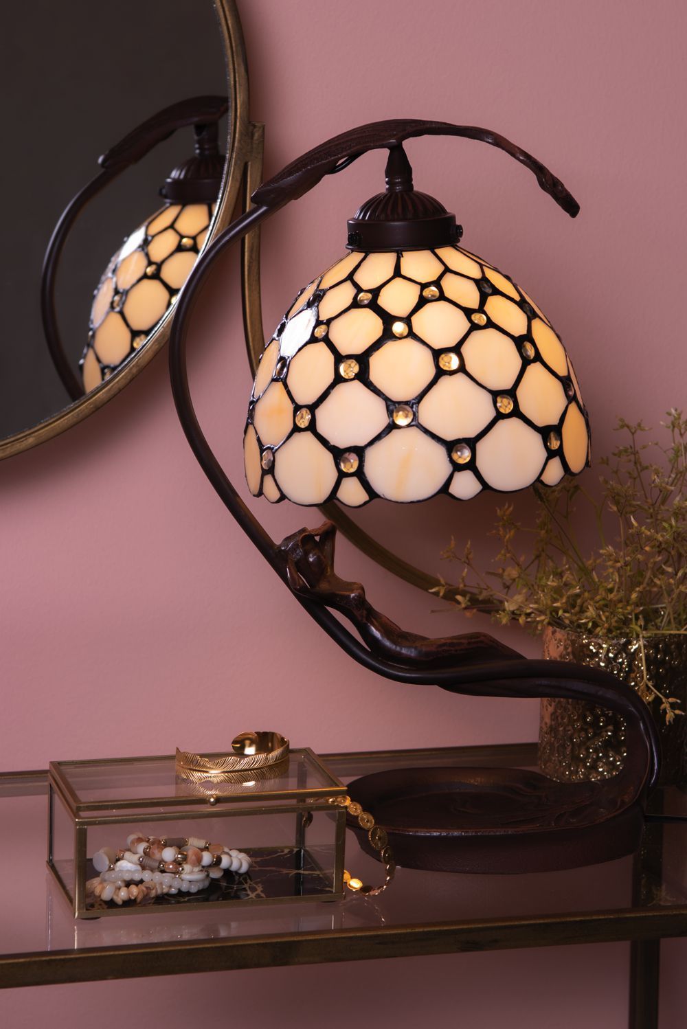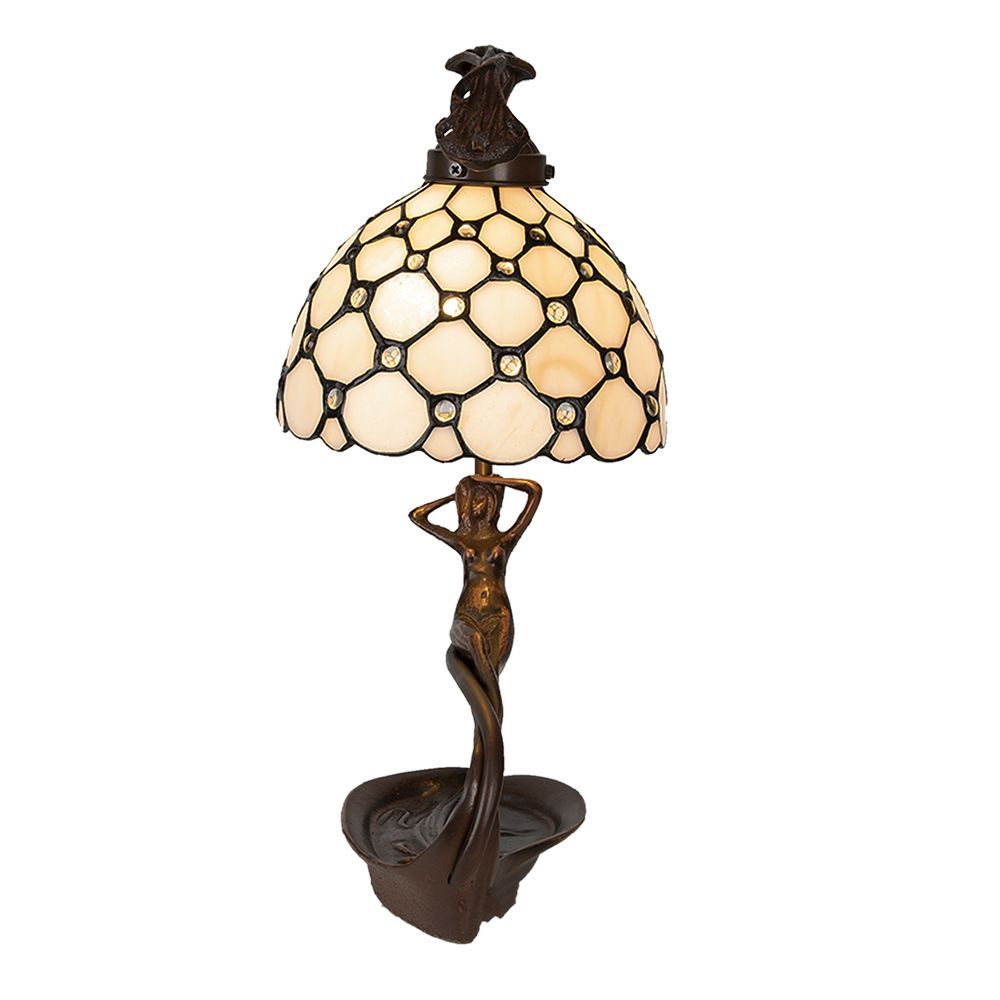 Clayre & Eef Tiffany Tischlampe 28x20x41 cm Beige Glas