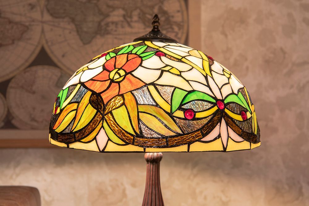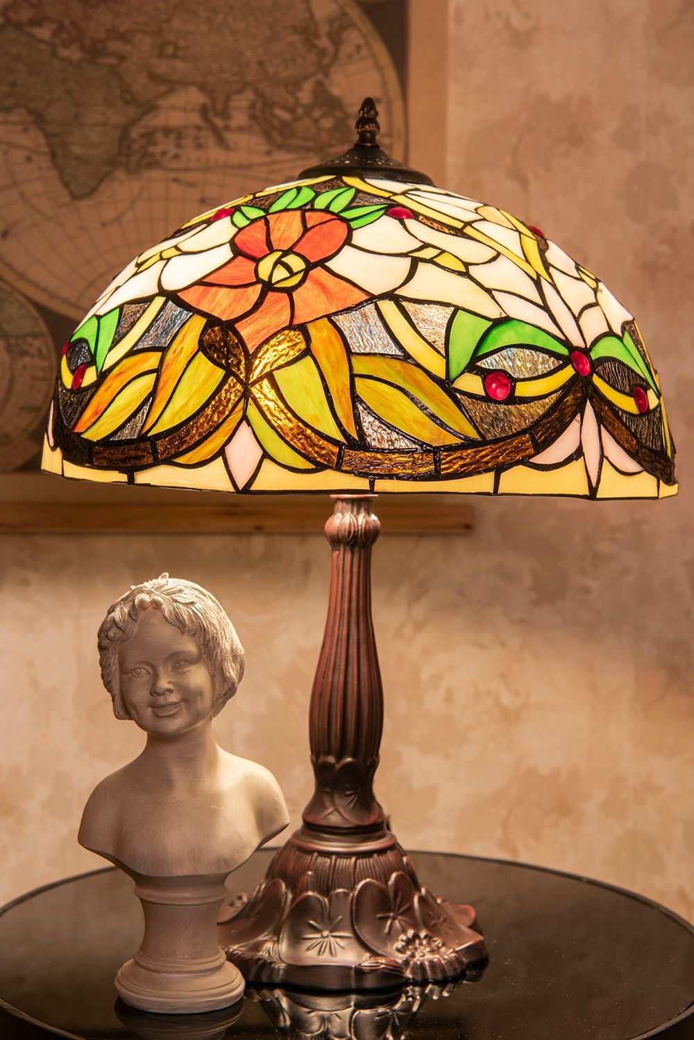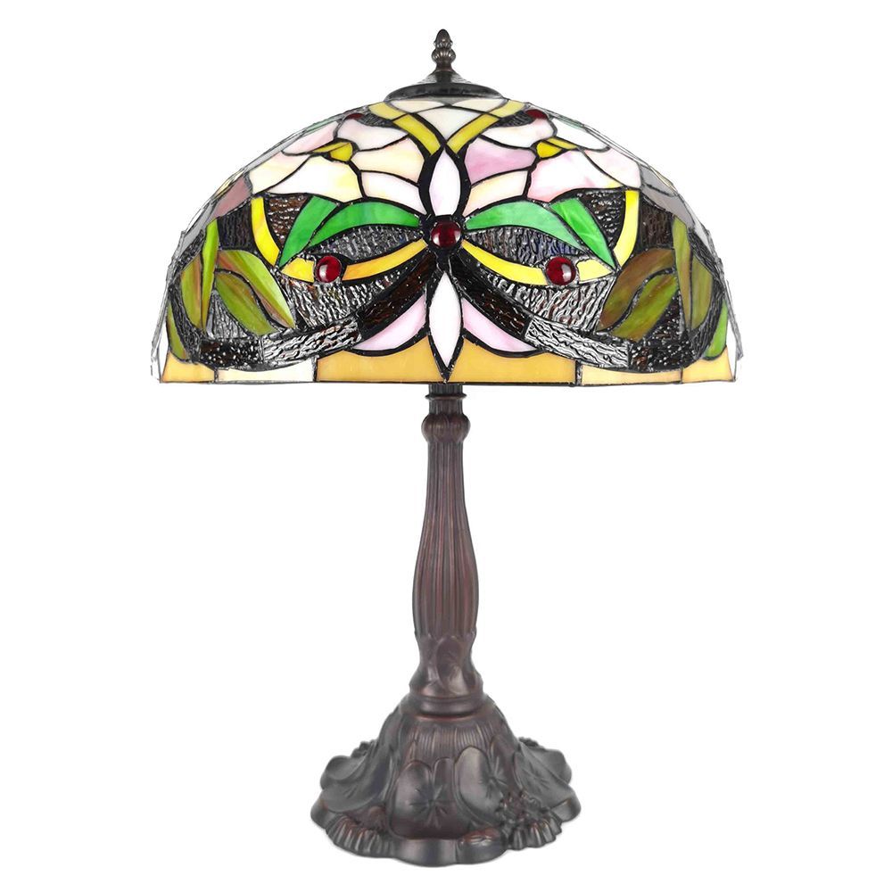 Clayre & Eef Tiffany Tischlampe Ø 41x58 cm Beige Grün Polyresin Blumen