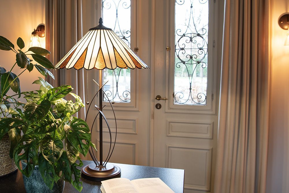 Clayre & Eef Tiffany Tischlampe Ø 41x69 cm Beige Braun Glas