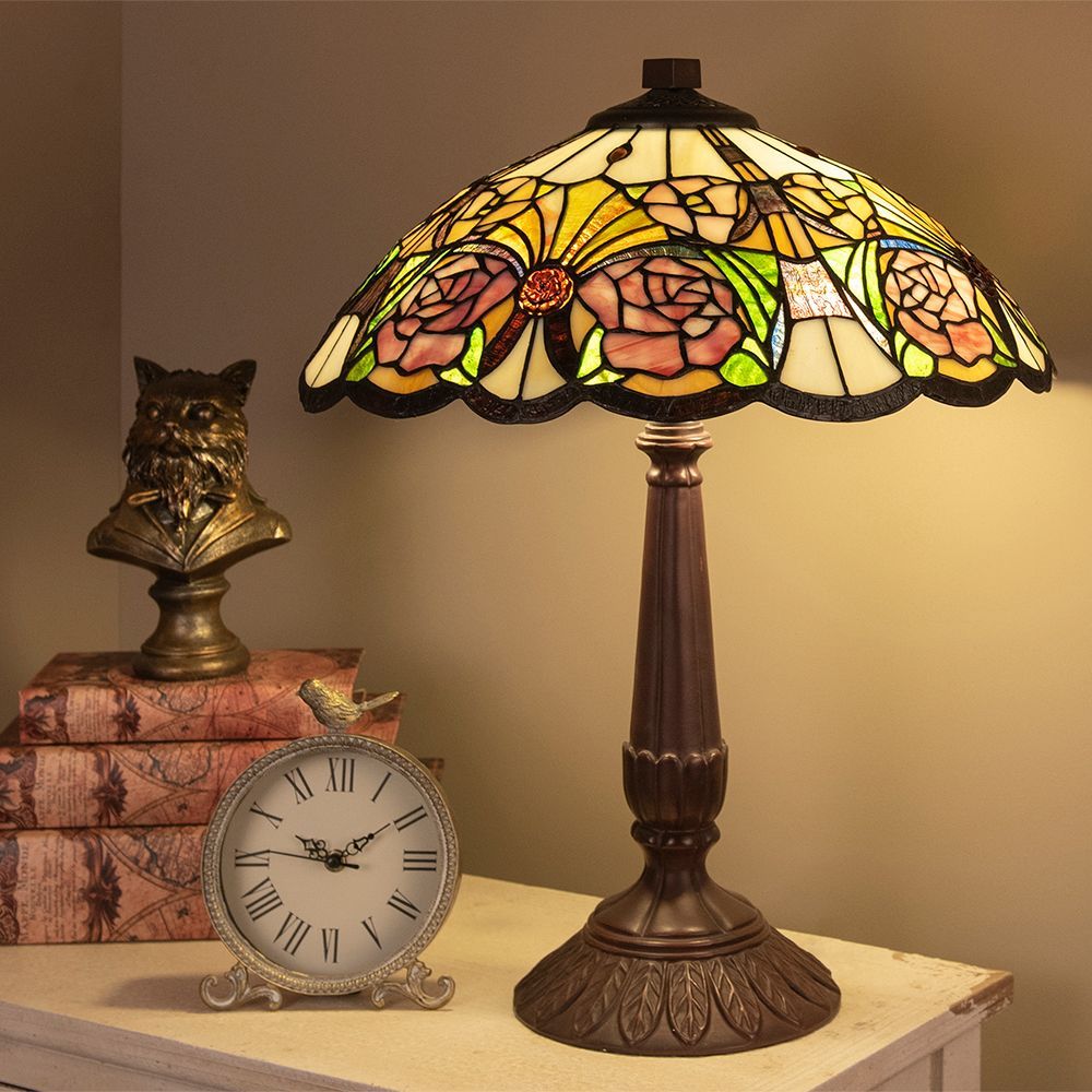 Clayre & Eef Tiffany Tischlampe Ø 44x57 cm Gelb Grün Glas Blumen