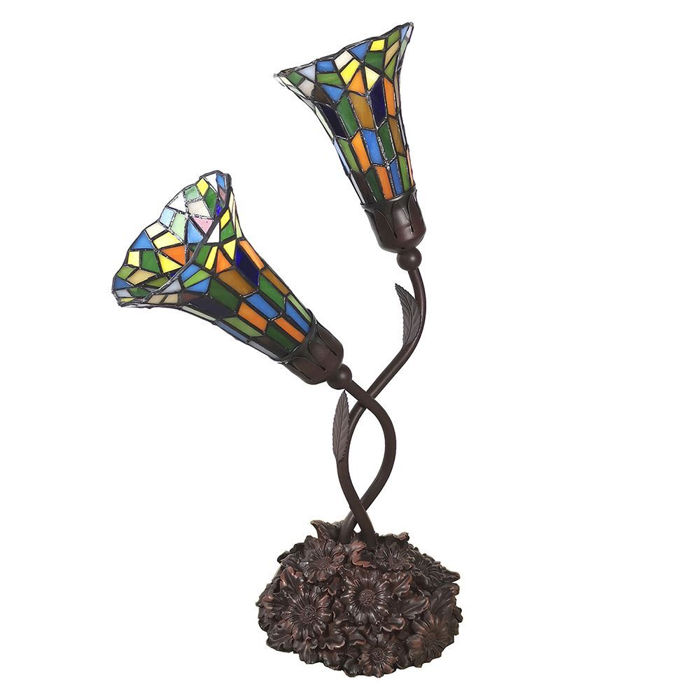 Clayre & Eef Tiffany Tischlampe 46x28x63 cm Beige Blau Glas