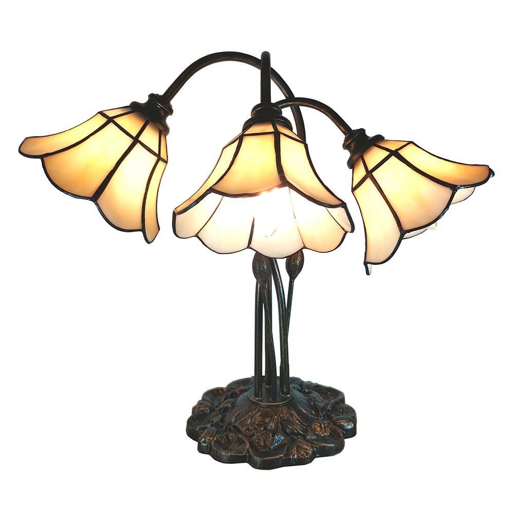 Clayre & Eef Tiffany Tischlampe 46x28x63 cm Beige Glas Tulpen