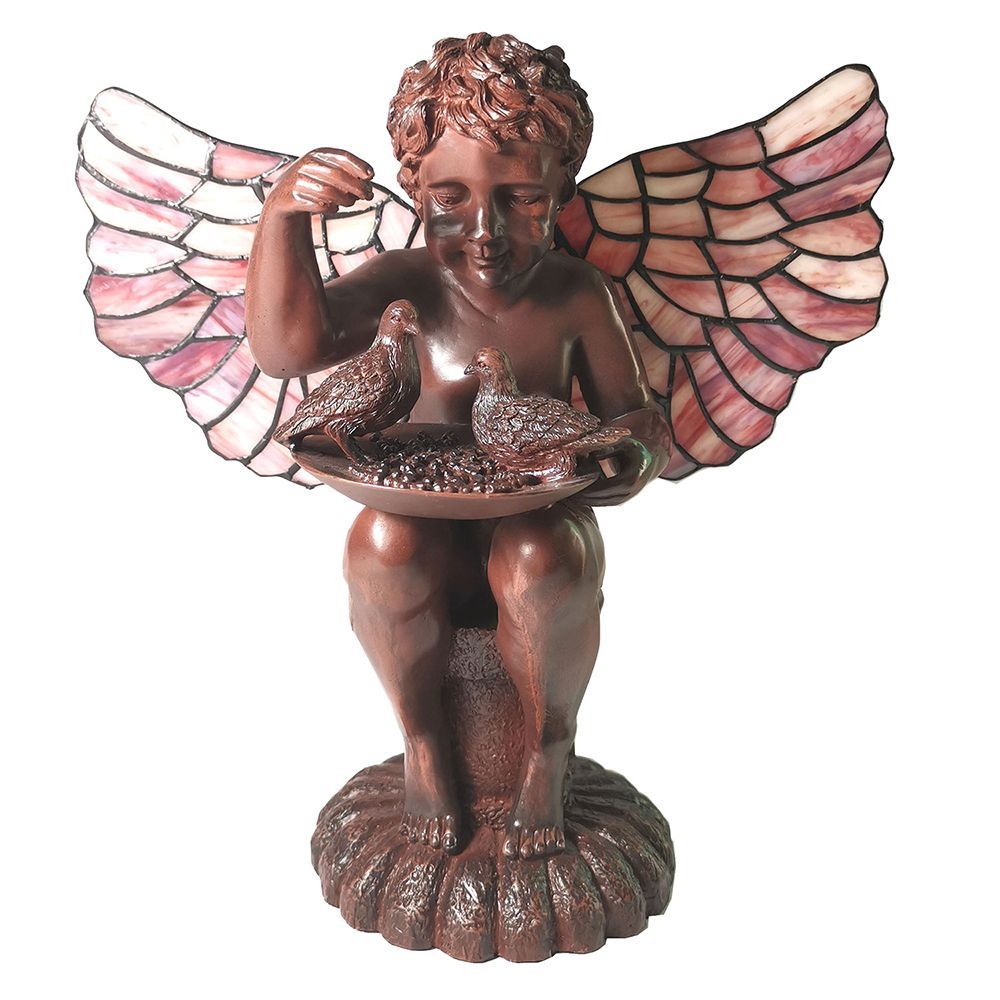 Clayre & Eef Tiffany Tischlampe Engel 41x26 cm Braun Rosa Glas