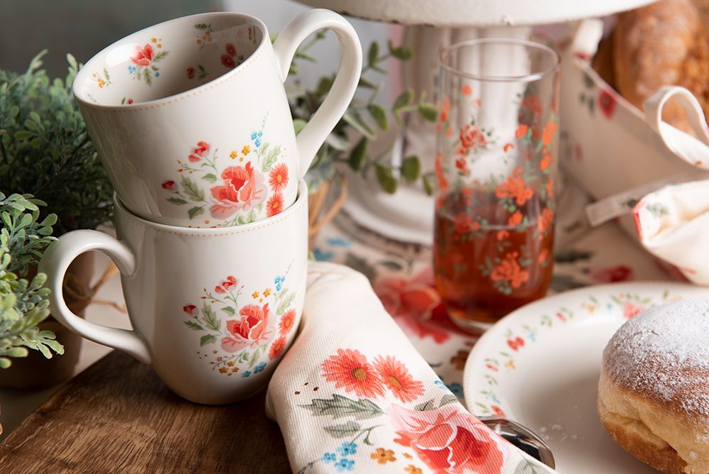 Clayre & Eef Clayre & Eef Tischdecke 150x150 cm Beige Baumwolle Rosen (Gr. 150x150 cm)
