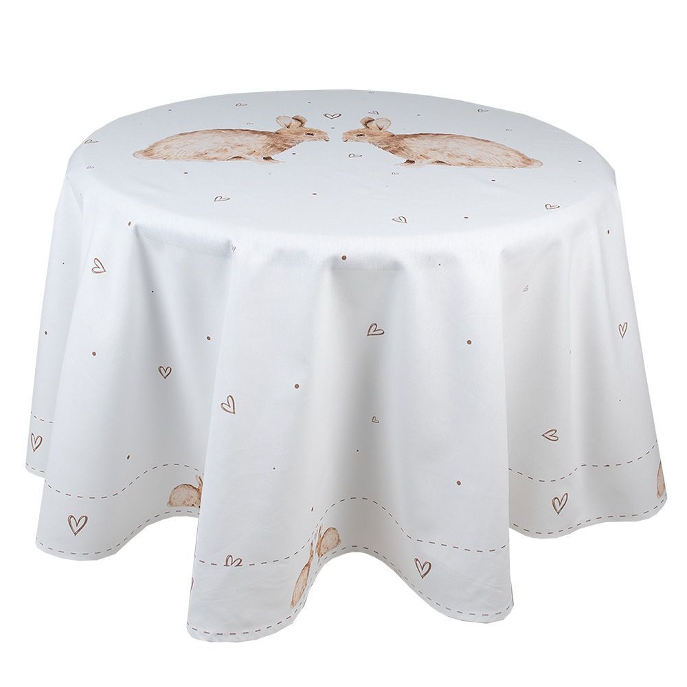 Clayre & Eef Clayre & Eef Tischdecke Ø 170 cm Weiß Braun Baumwolle Kaninchen (Gr. Ø 170 cm)