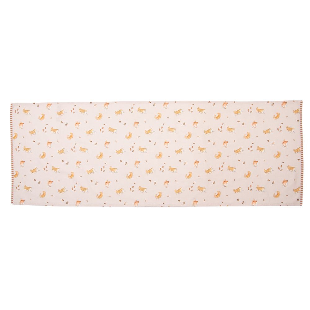 Clayre & Eef Clayre & Eef Tischläufer 50x140 cm Beige Baumwolle Croissant und Kaffee