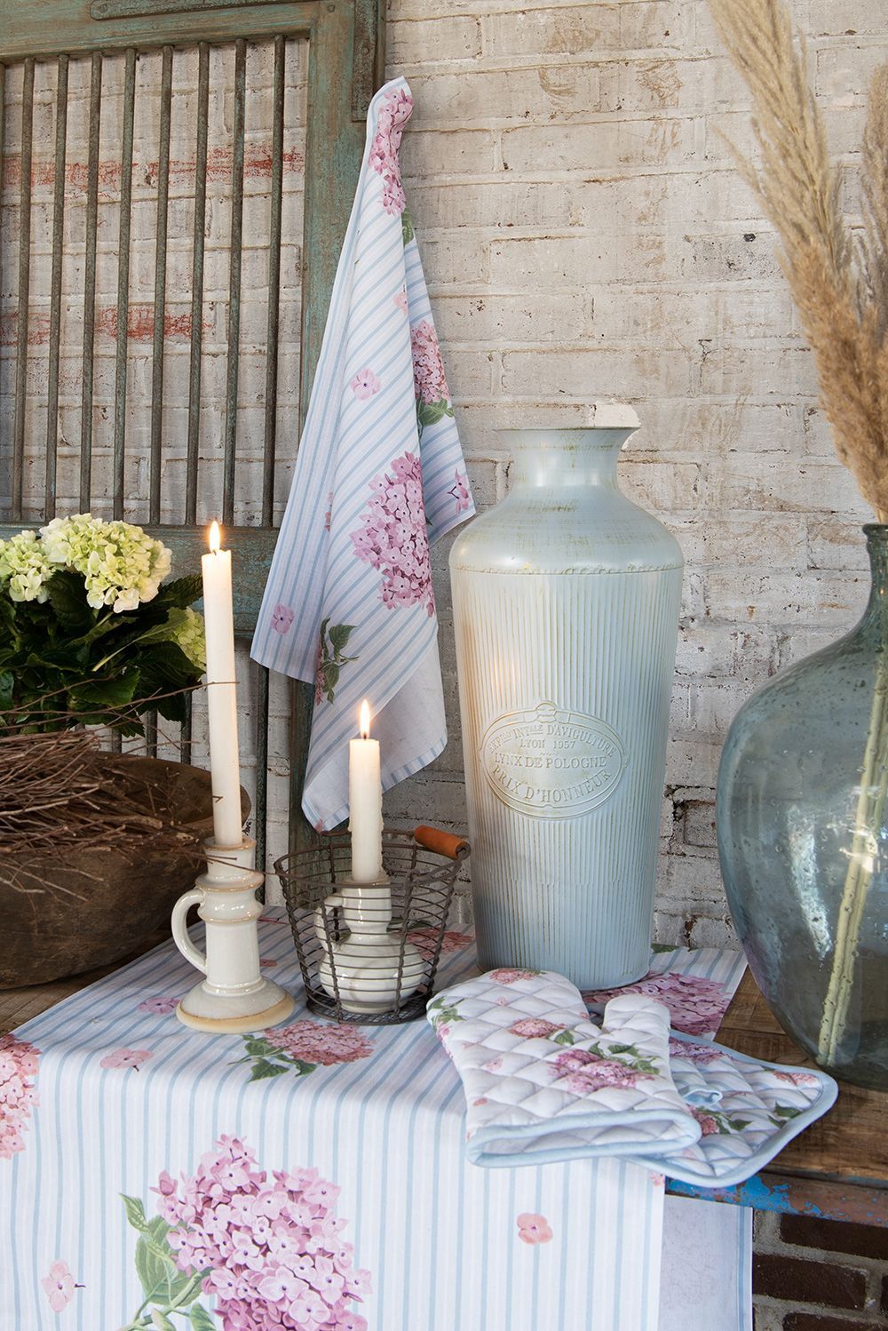 Clayre & Eef Clayre & Eef Tischläufer 50x140 cm Blau Rosa Baumwolle Hortensie (Gr. 50x140 cm)