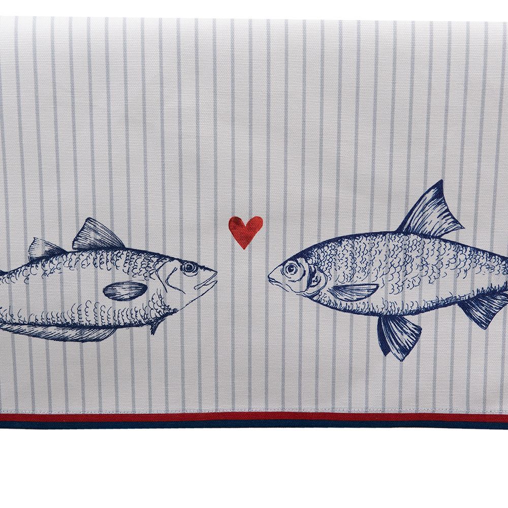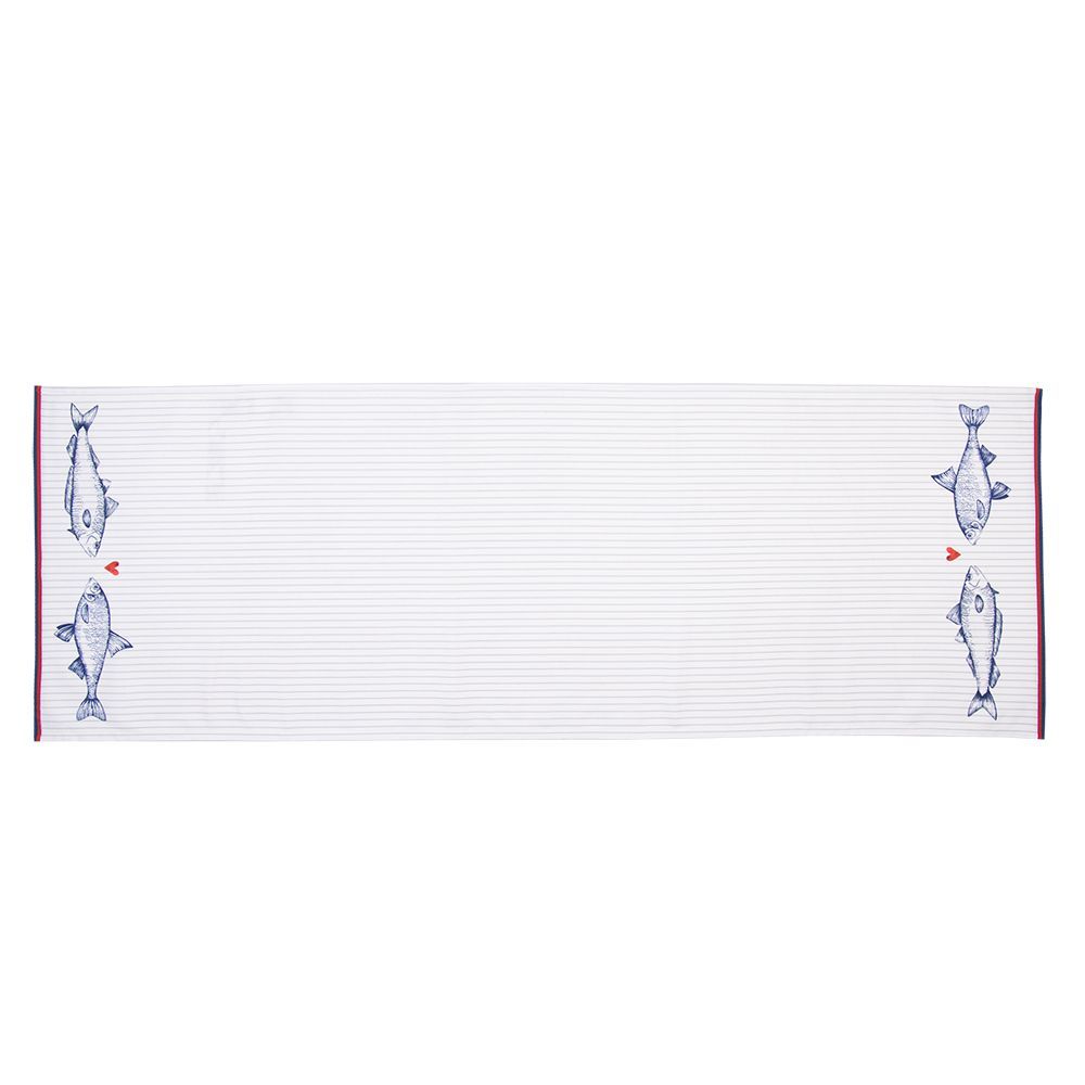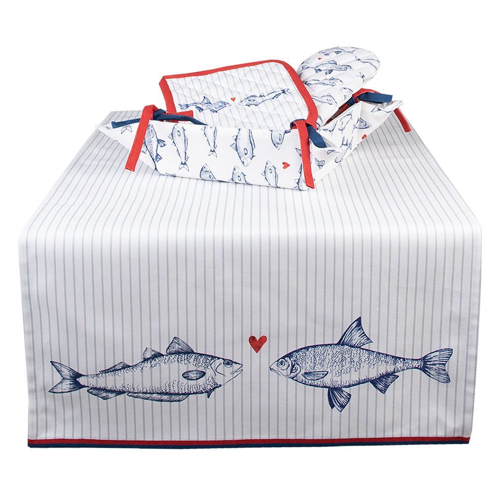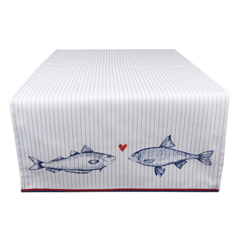 Clayre & Eef Clayre & Eef Tischläufer 50x140 cm Weiß Blau Baumwolle Fische (Gr. 50x140 cm)