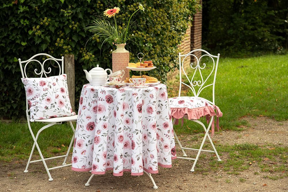 Clayre & Eef Clayre & Eef Tischläufer 50x140 cm Weiß Rosa Baumwolle Rosen (Gr. 50x140 cm)