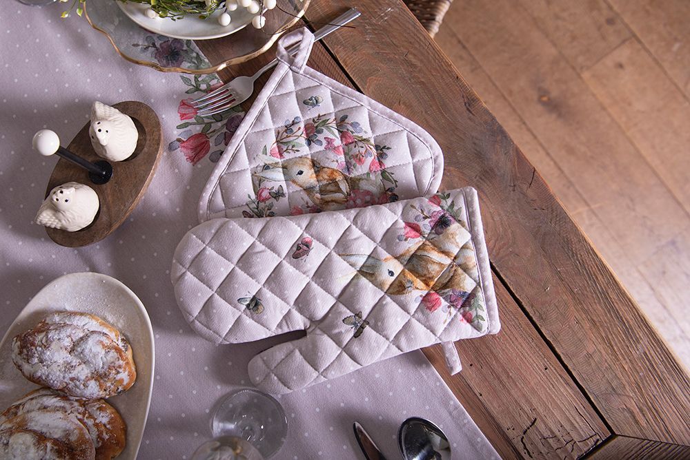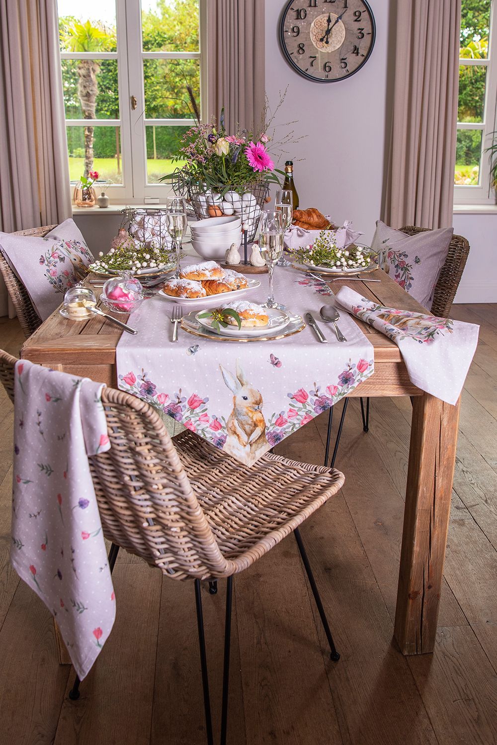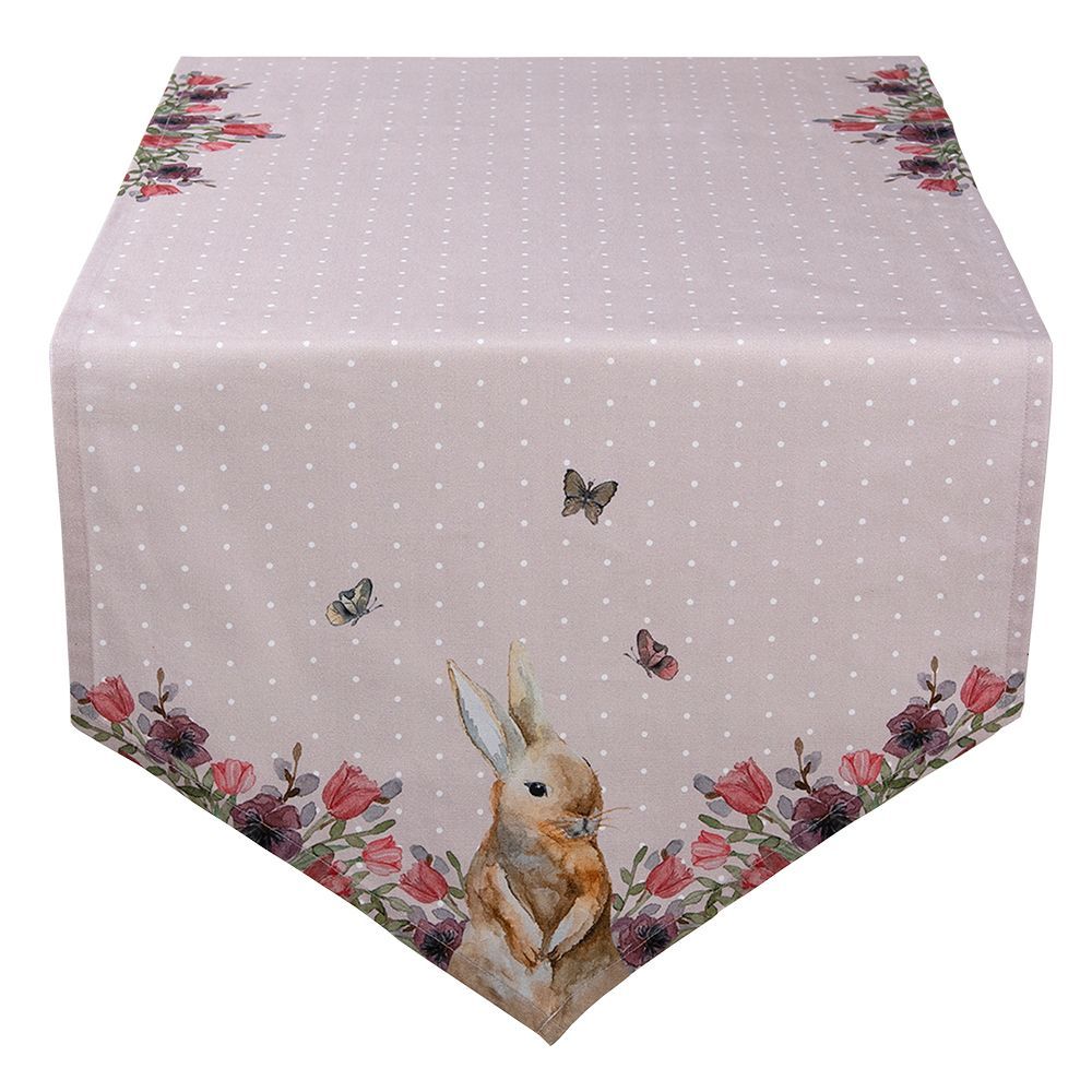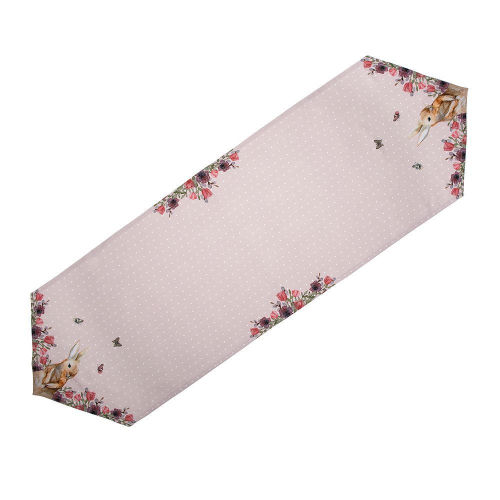Clayre & Eef Clayre & Eef Tischläufer 50x160 cm Beige Rosa Baumwolle Kaninchen Blumen