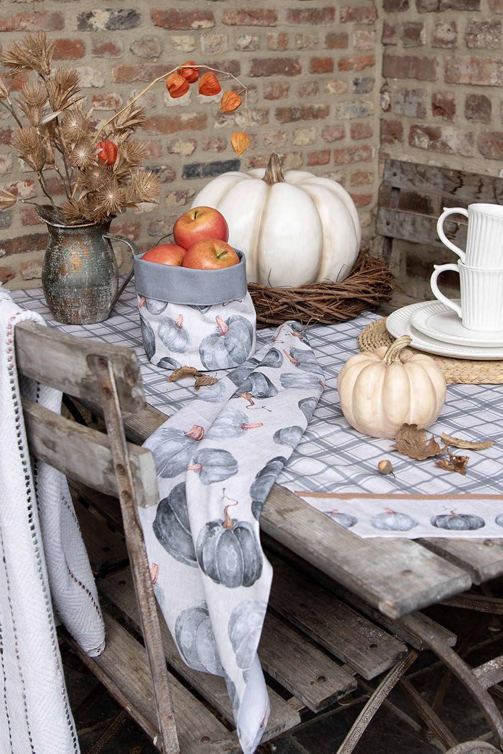 Clayre & Eef Clayre & Eef Tischläufer 50x160 cm Grau Baumwolle Kürbis (Gr. 50x160 cm)