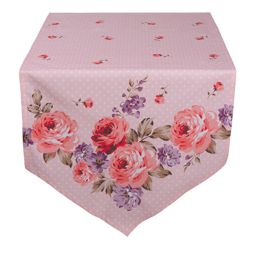 Clayre & Eef Clayre & Eef Tischläufer 50x160 cm Rosa Violett Baumwolle Rosen (Gr. 50x160 cm)